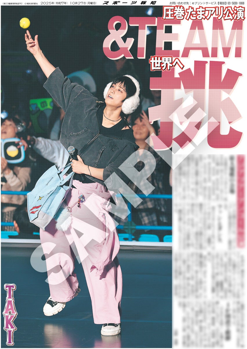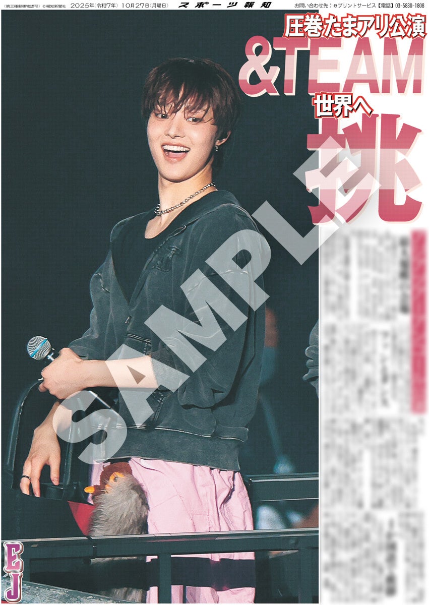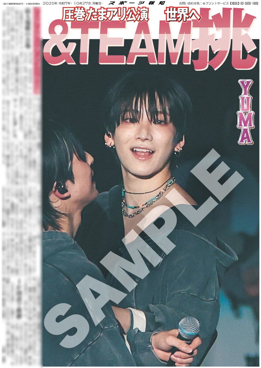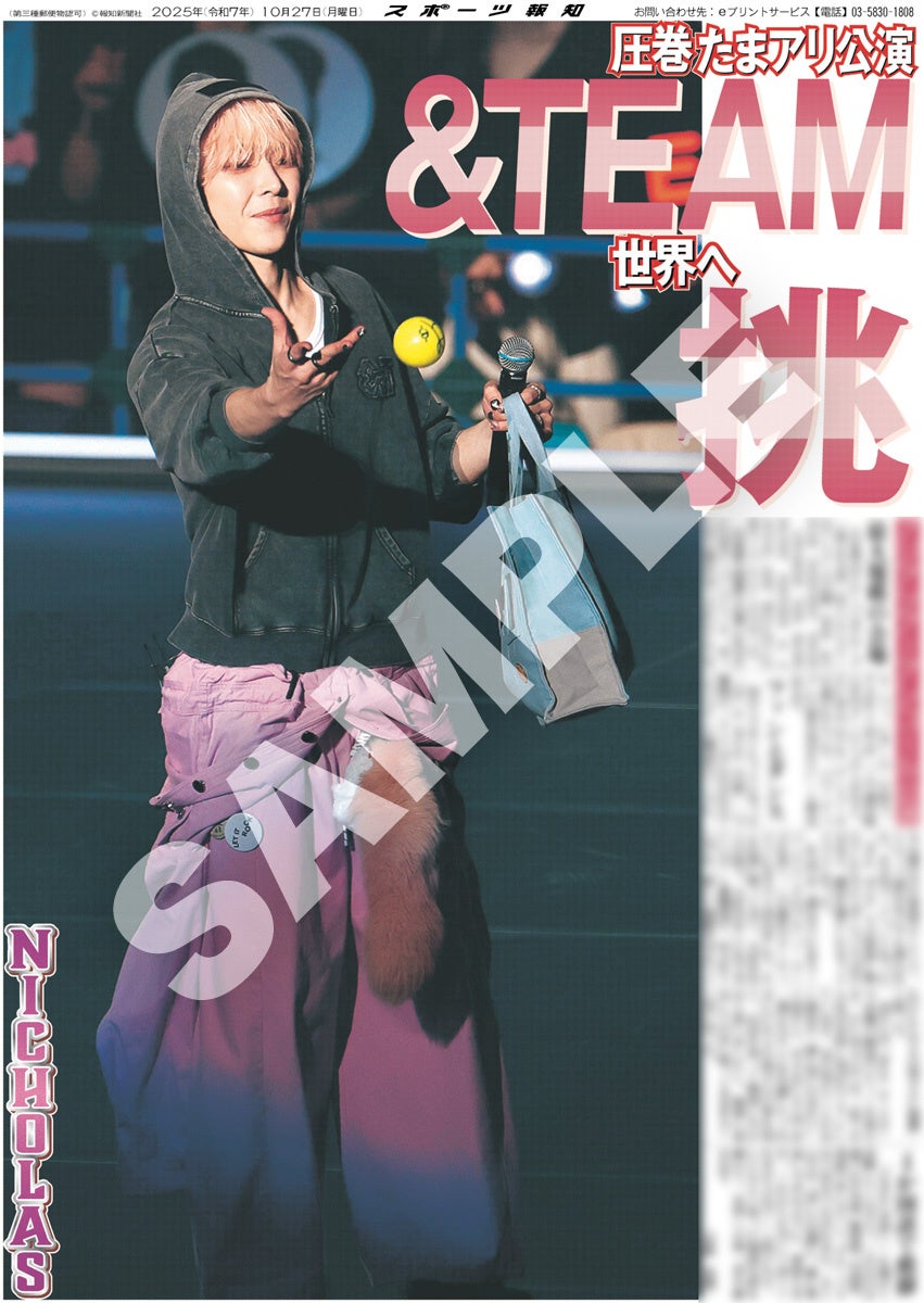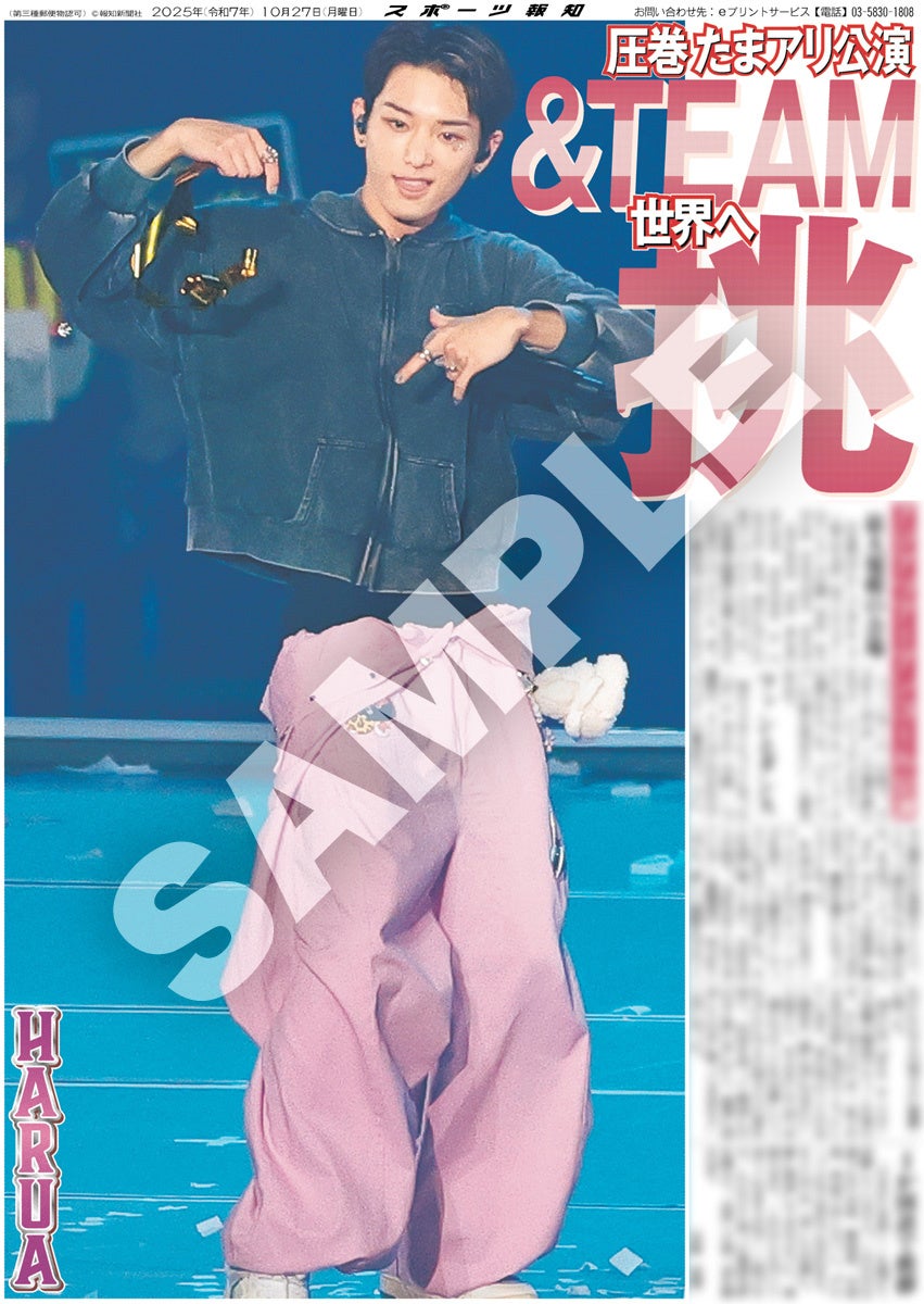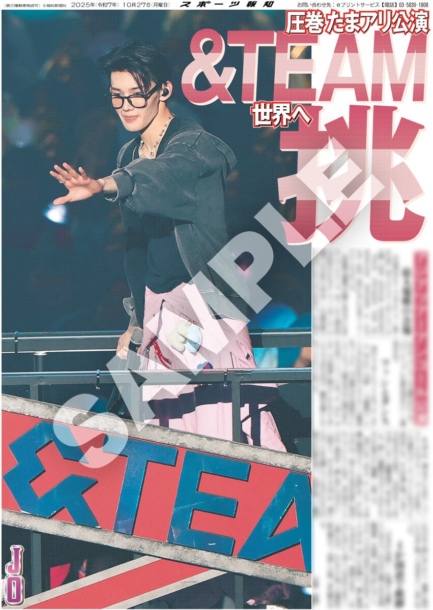 スポーツ報知を発行する報知新聞社(代表取締役社長・長谷川剛)は新聞の一部紙面をコンビニエンスストアのマルチコピー機からプリントできる「スポーツ報知コンビニプリント」サービスを展開中。スポーツ紙ならではの大きな写真を使った紙面をプリント版として販売しています。10月27日付掲載、日本発のグローバルグループ「&TEAM」のアジアツアーのアンコール公演「2025 &TEAM CONCERT TOUR 'AWAKEN THE BLOODLINE' ENCORE in JAPAN」の様子を伝える紙面を発売中。全員パターン4種と個人別9種の合わせて13種類になります。
