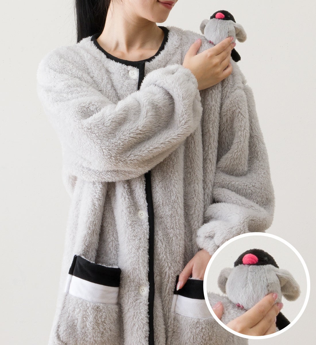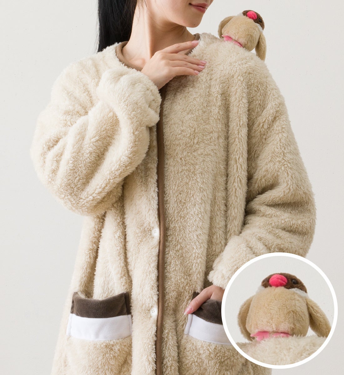 デコホームの着る毛布「肩のせアニマルシリーズ」には、肩にマジックテープで取り外しができるかわいいマスコットがついています。肩に乗っているところを眺めたり、取り外してぬいぐるみのように触って癒されたりと、おうち時間をより楽しくしてくれます。