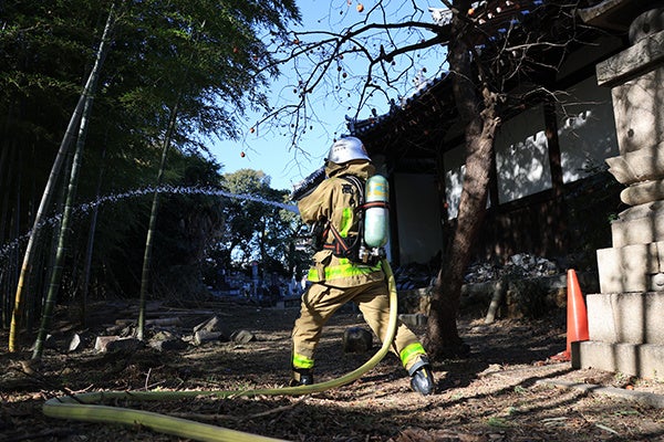 文化財防火デーを前に高槻市の慶瑞寺で消防訓練