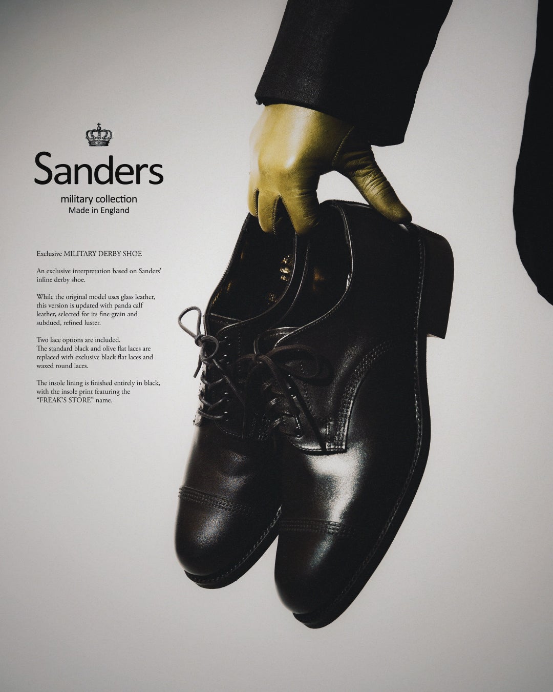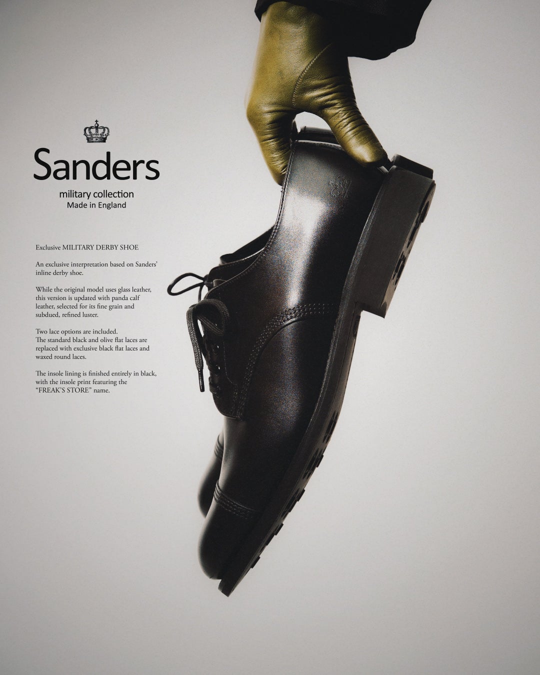 FREAK'S STOREがSandersに別注した"MILITARY DERBY SHOE"は、3月下旬よりFREAK'S STORE店舗・各種オンラインストアにて販売開始です。
