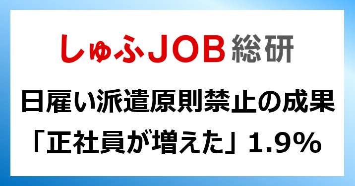 主婦・主夫層に聞く、日雇い派遣の原則禁止から10年超で成果はあった? 「正社員が増えた」1.9%/「特に成果があったとは思わない」42.9%/世帯年収500万円未満「見直すべき」35.4%