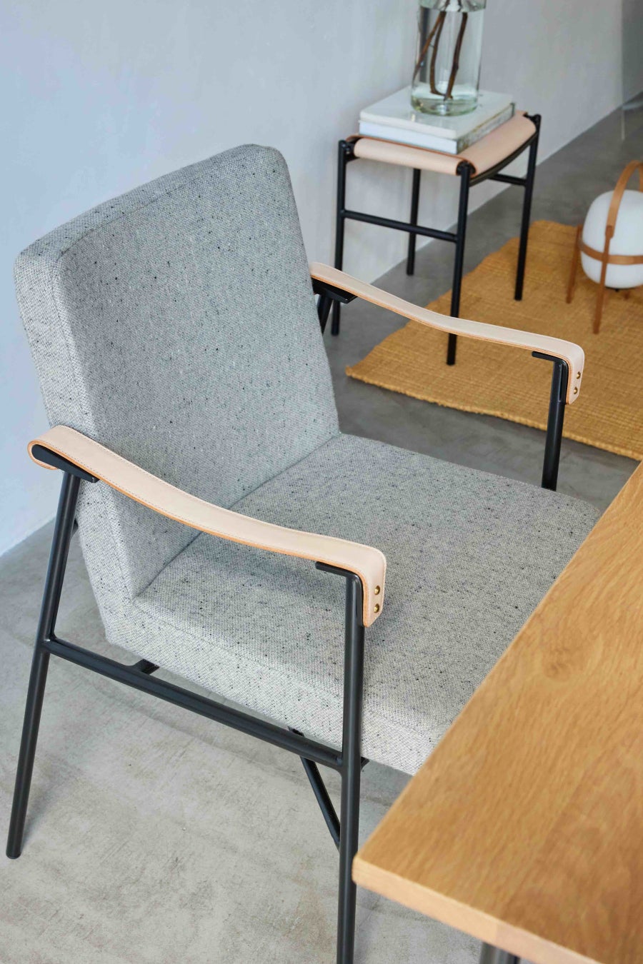 定番シリーズの「Bohty(ボシー)」同様、 木材を無駄なく使用するなどは変わらず、ファブリック素材にはリサイクルウールを使用、 〈Akzo Nobel 社〉の塗料を採用し、環境への負荷を最小限に留めるよう配慮しました。