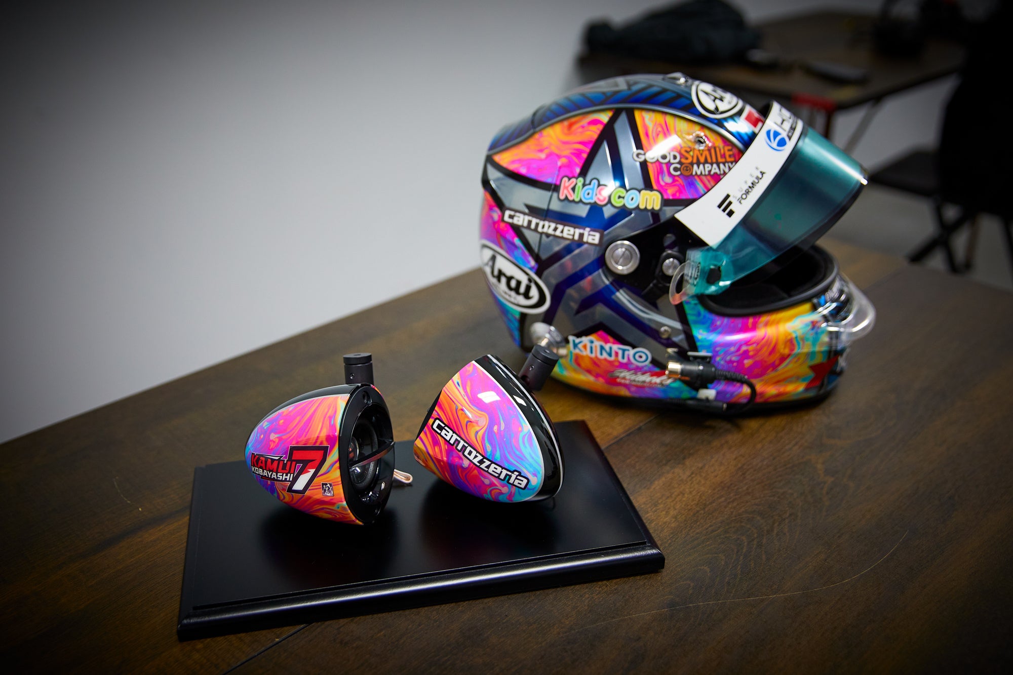 小林可夢偉氏のヘルメットをデザインするペインターとカロッツェリアスピーカーのコラボ企画ページ: