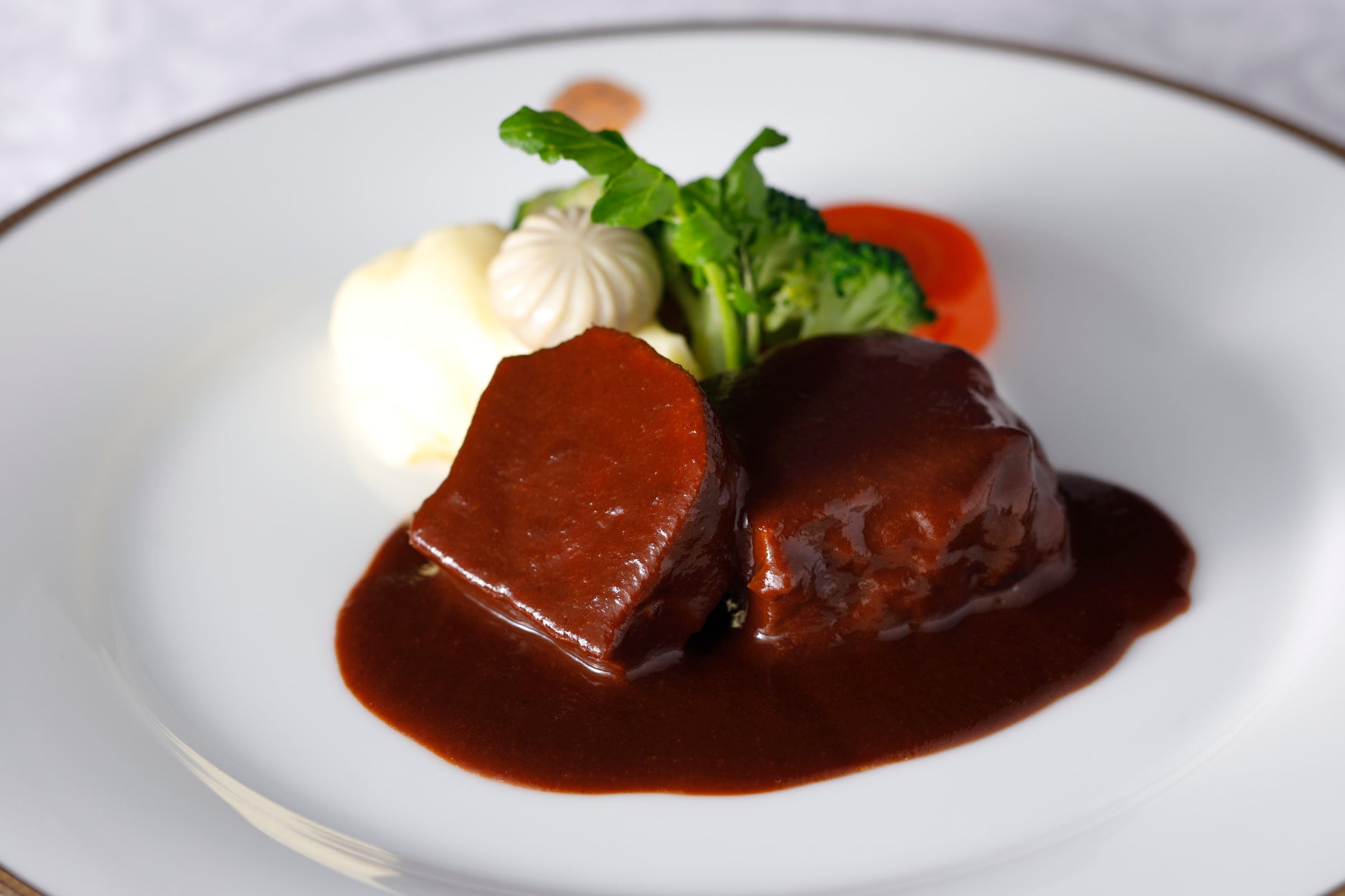 デミグラスソース、トマトソース、赤ワインでじっくり煮込みました。柔らかい牛舌と深い味わいのソースが楽しめます。