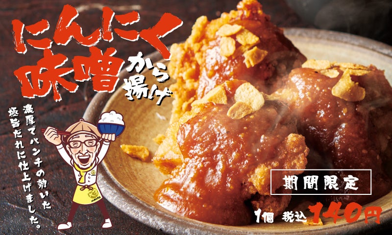 濃厚でパンチの効いた極旨だれのにんにく味噌は、ご飯にあいます!ビールにあいます!ぜひご一緒にお楽しみいただきたい逸品です。新しいフレーバー「にんにく味噌から揚げ」をぜひこの機会にお試しください!