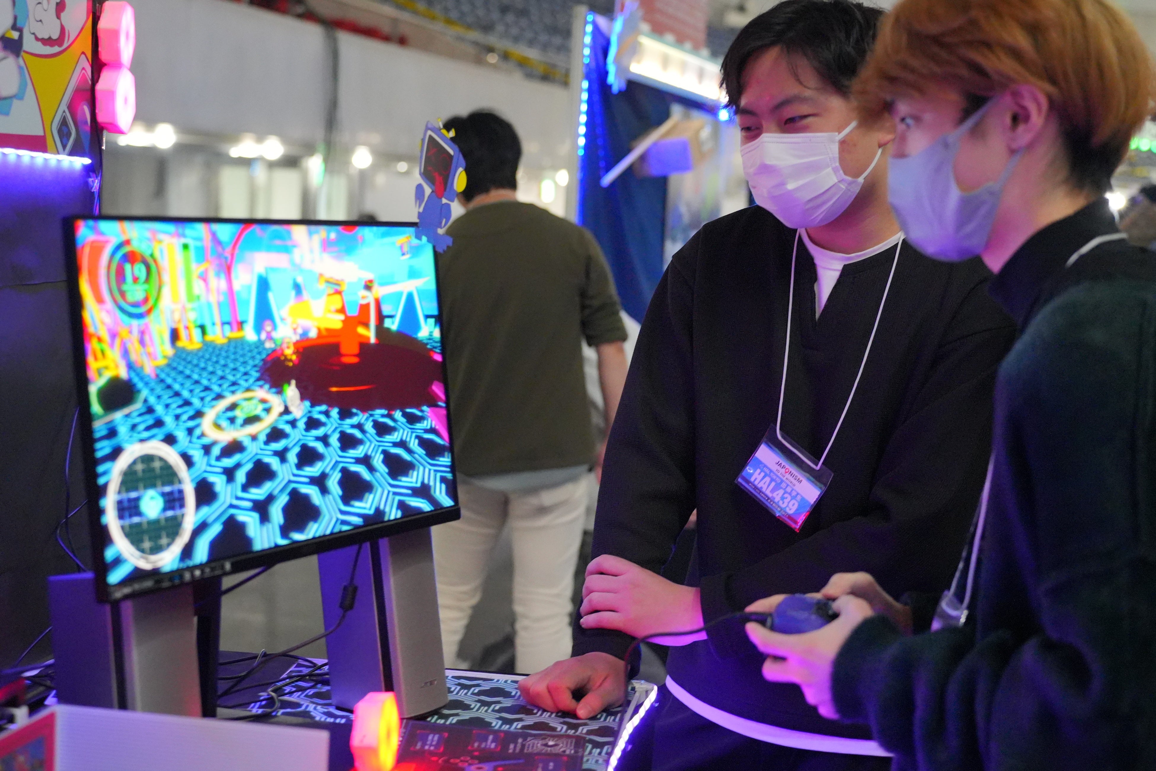 ゲーム学部、CG学部、ミュージック学部、カーデザイン学部、IT学部の学生が出品