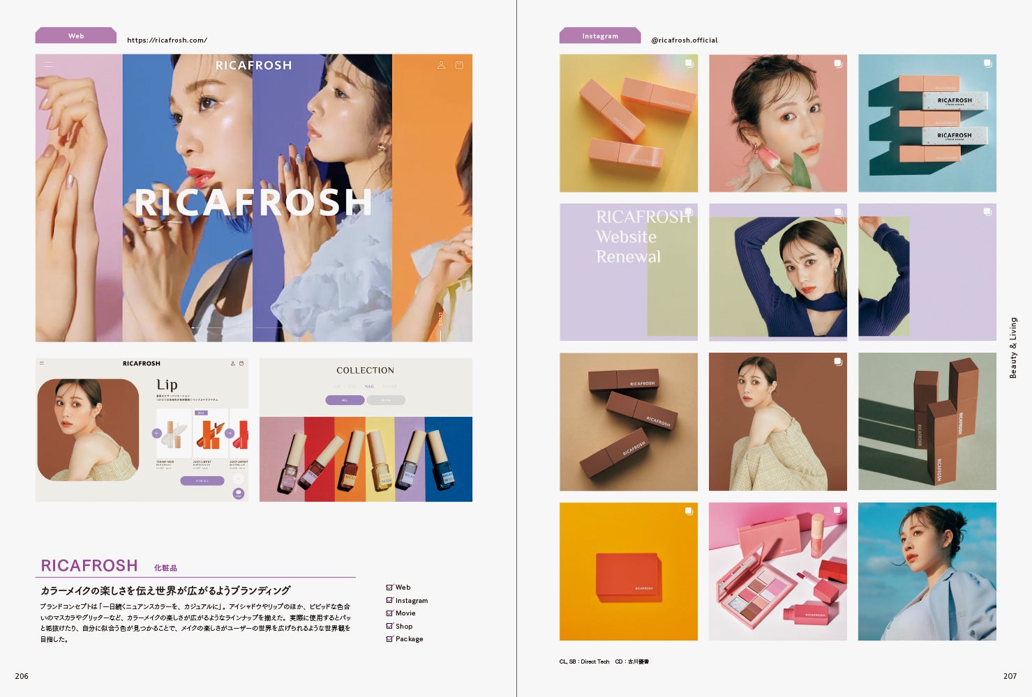 本書では、これまでブランディングの開発対象であったロゴやパッケージ、店舗やショップツールなどに加え、WebやSNSを活用し、ブランドを発信している実例を約120作品紹介しています。Webはブランドの印象を強く打ち出すトップページと、それに続く特徴のあるページを紹介しています。また、インスタグラムは、ブランドの世界観を表現している投稿をピックアップしました。 店舗や商品では伝えきれないブランドの世界観やメッセージを可視化し、より多くの人に届けることができるWebとSNSは、ブランド開発でも大きな役割を担っていくはずです。