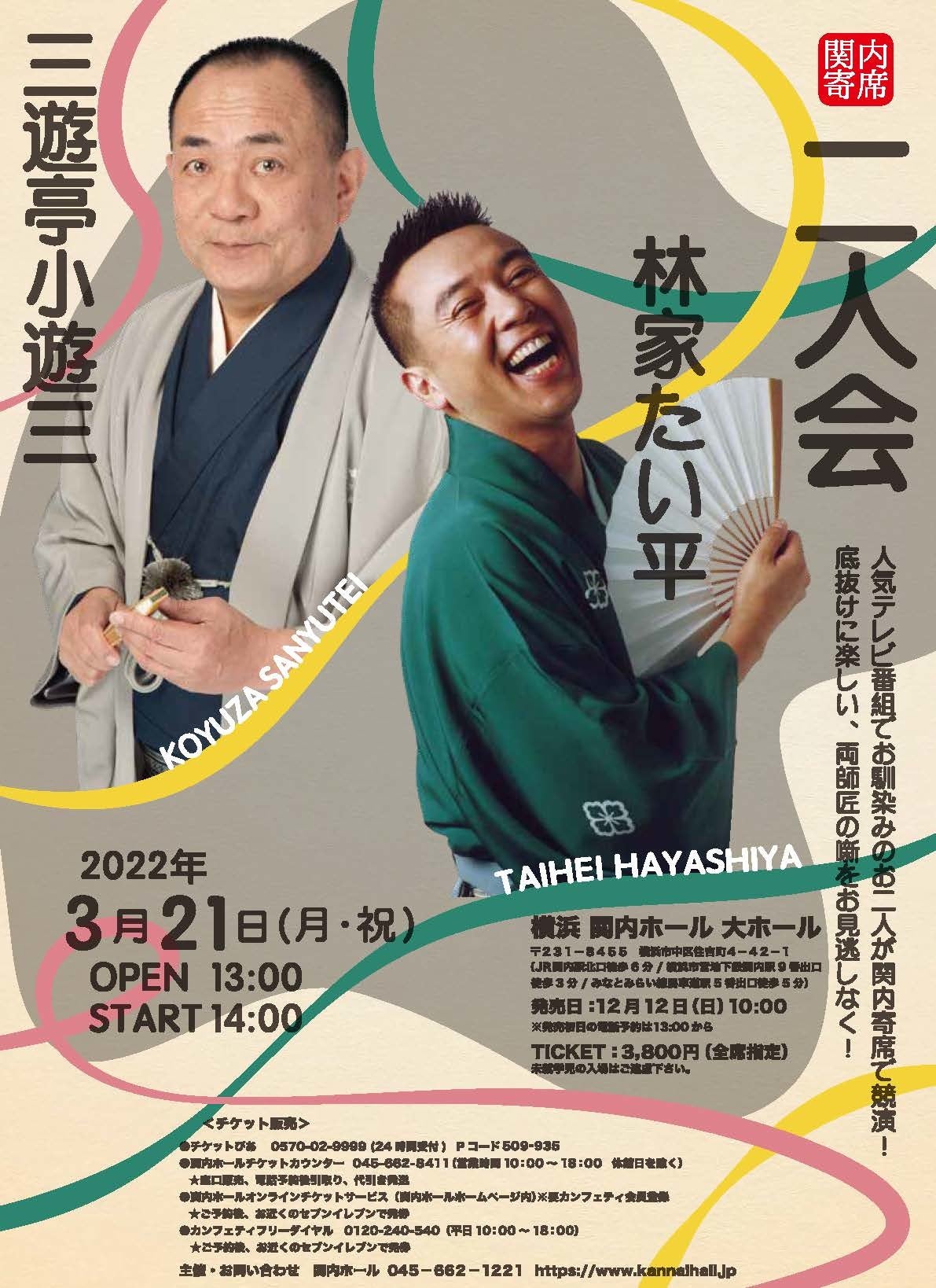 2022年3月21日(月・祝)に横浜市市民文化会館 関内ホール・大ホールにて開催される「関内寄席 小遊三 たい平 二人会」底抜けに楽しい、両師匠の噺をお見逃しなく!