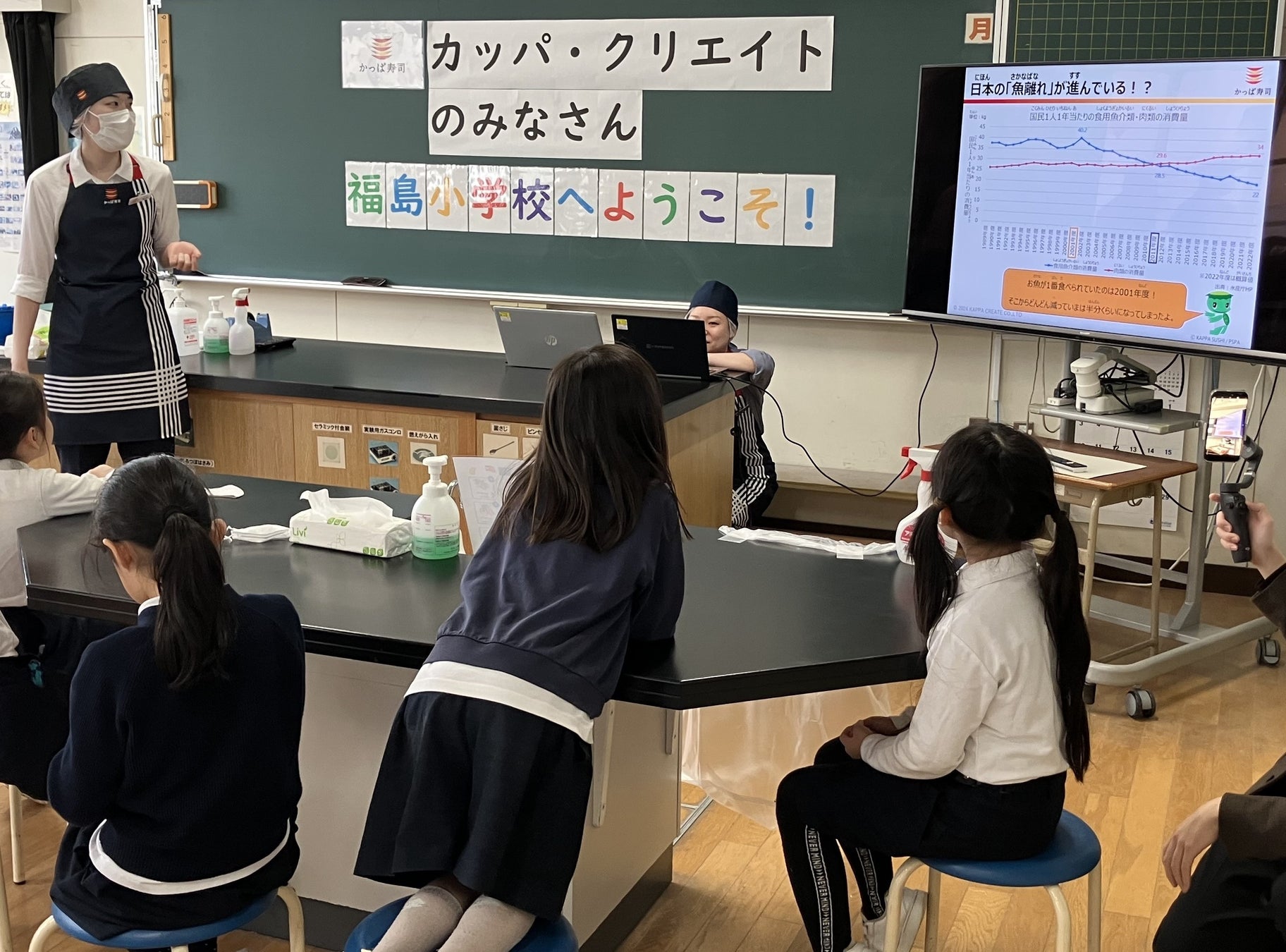 コロワイドグループのかっぱ寿司(カッパ・クリエイト㈱ 本社:神奈川県横浜市、代表取締役社長 山角豪)は、食のインフラの担い手として、持続可能な社会の発展への貢献と当社がマテリアリティとして掲げている地域・社会への貢献の一環として、企業価値の向上を目指しています。2025年3月28日(金)大阪市立福島小学校にて、食育と持続可能な社会発展をテーマに体験型の出張授業を実施しました。