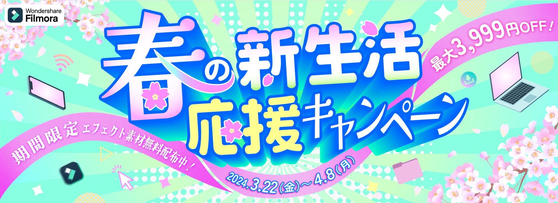 【最大3,999円オフ】春の新生活応援キャンペーン実施中!|Wondershare Filmora(フィモーラ)