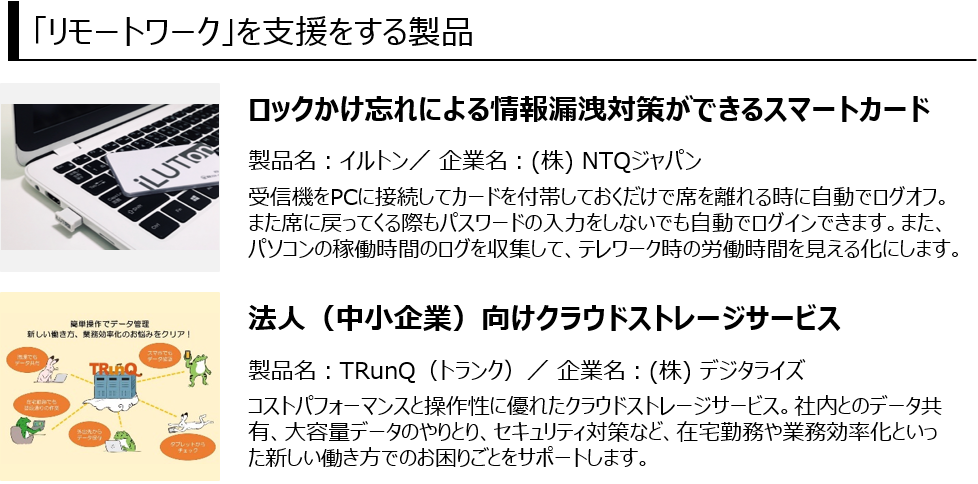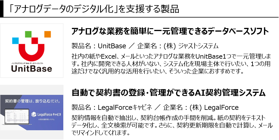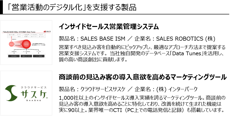 デジタルデータ化、テレワーク、電子承認、営業活動のデジタル化 などが出展
