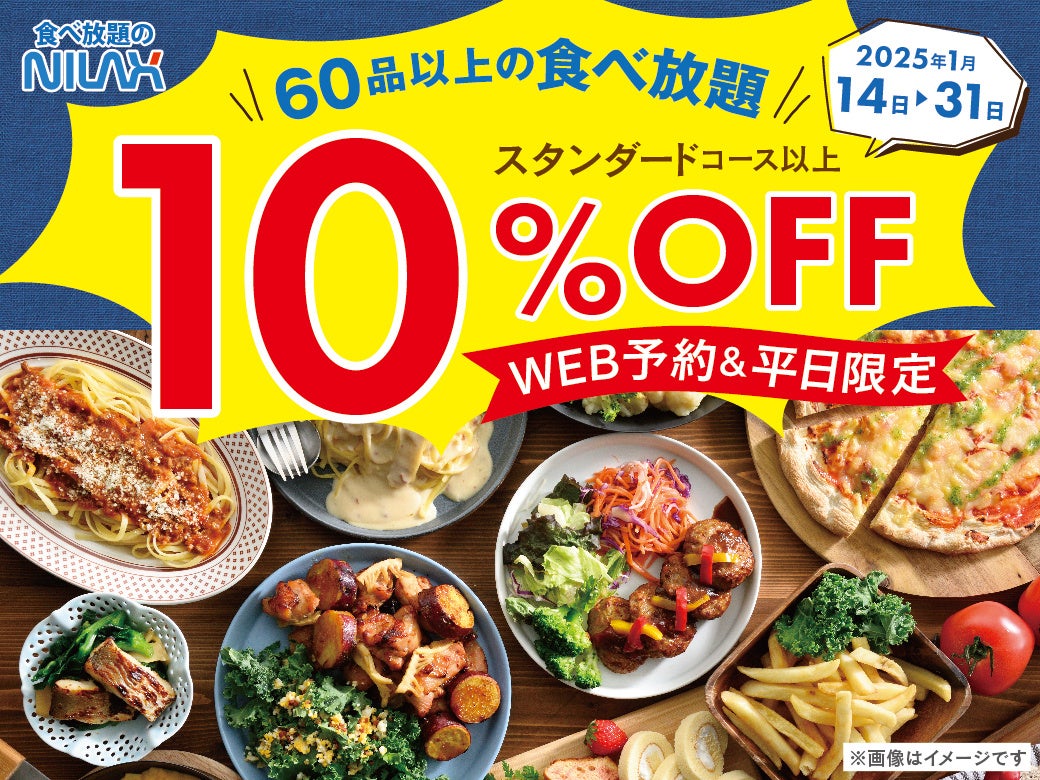 【今なら10%OFF!! お得なWEB予約!!】1月14日~31日バラエティー豊かな食べ放題『ニラックスブッフェ』40店舗にて、平日限定のキャンペーンを開催!ご予約受付中!