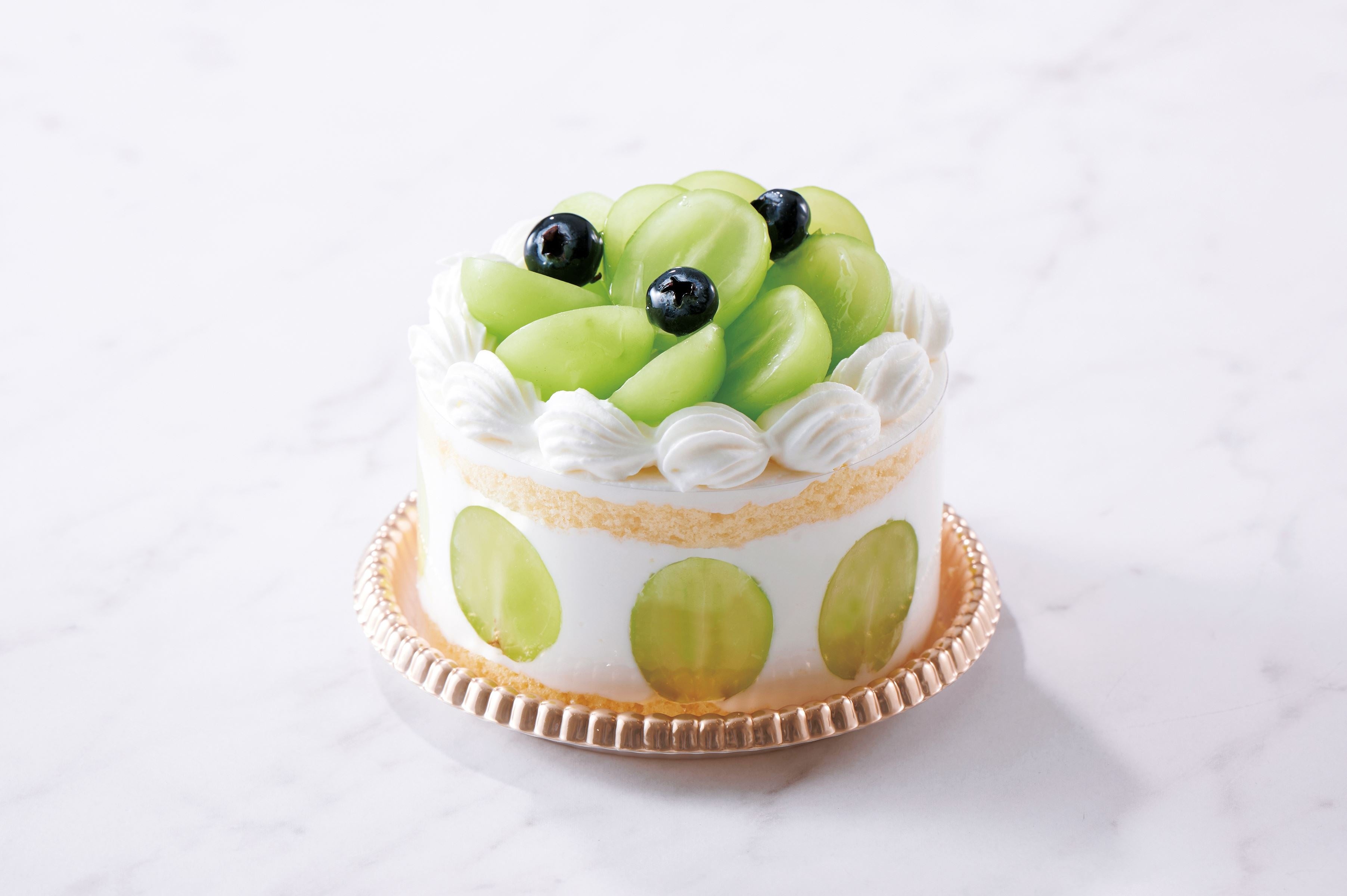 シャインマスカットをふんだんに使用したショートケーキです。ぐるりとケーキを囲むシャインマスカットの断面がなんとも美しく、大切な方へのプレゼントとしてはもちろん、自分へのご褒美にもおすすめです。