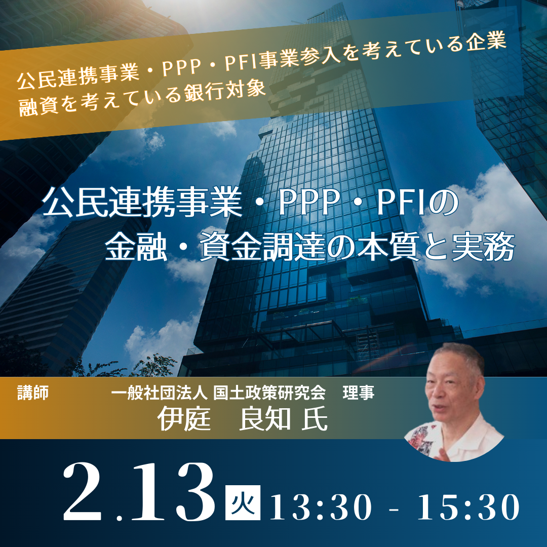 【JPIセミナー】「公民連携事業・PPP・PFIの金融・資金調達の本質と実務」2月13日(火)開催