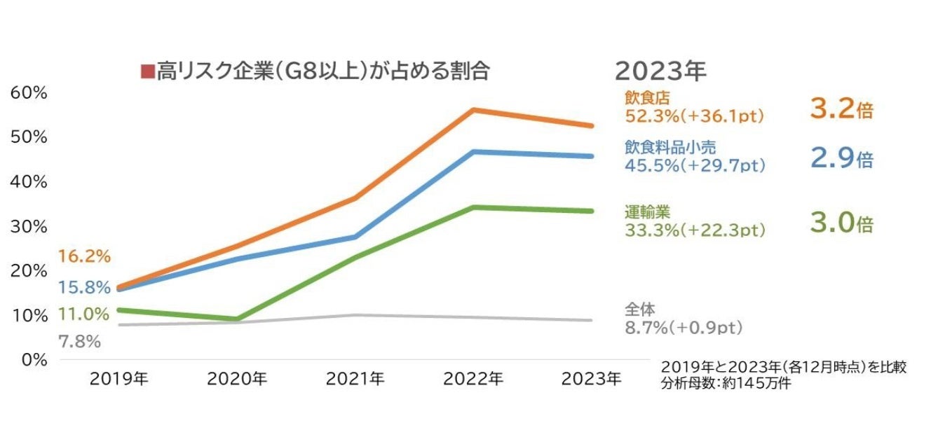 コロナ禍前と比べ高リスク企業が3倍に増加