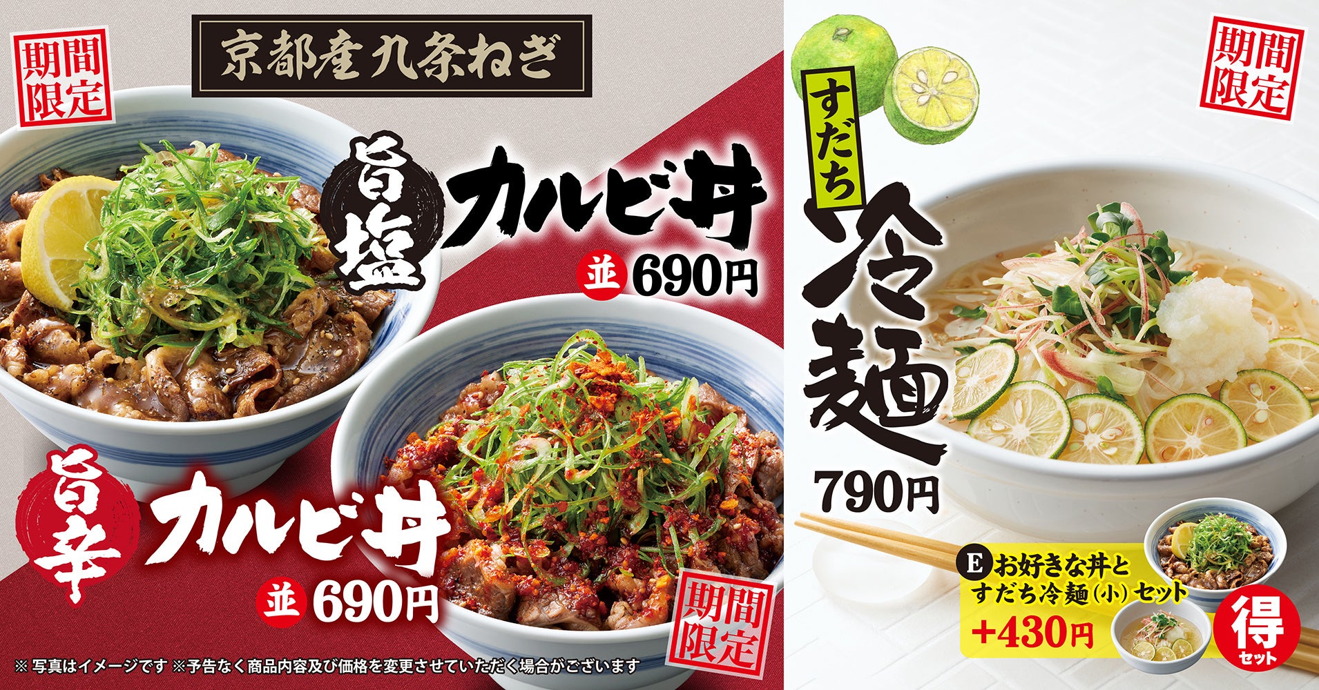 【焼きたてのかるび】7月25日(木)より京都産九条ねぎを使用した“旨辛カルビ丼”と“旨塩カルビ丼”を期間限定で販売開始!