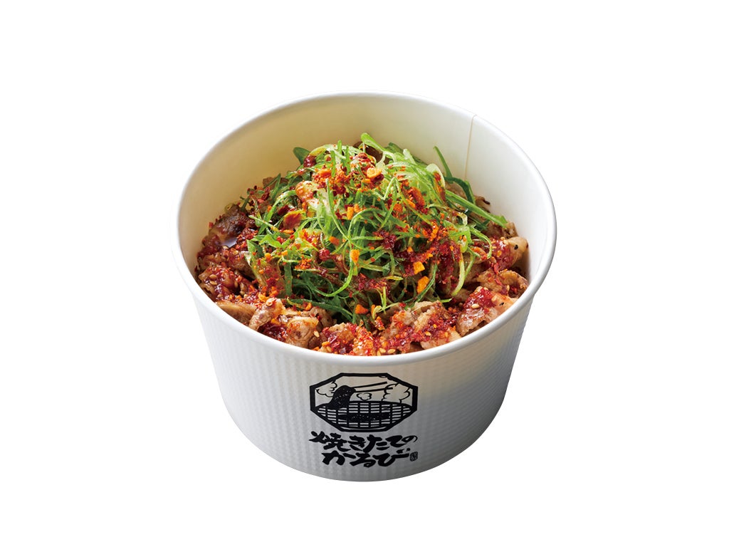 熟成肉を使用した「焼きたてのカルビ丼」と厳選した牛肉の旨みが特徴の「ユッケジャンスープ」の専門店。美味しい食事をリーズナブルな価格で、お気軽に召し上がっていただけます。 看板商品の「焼きたてのカルビ丼」はご注文いただいてからカルビ肉を強火で一気に焼き上げて、肉本来の旨味と香ばしさを引き立てます。タレは20種類の調味料を秘伝の配合でブレンドし、甘み、辛味、酸味を絶妙なバランスで仕上げました。もう一つの看板商品「ユッケジャンスープ」は、厳選された牛肉がベースの特製だしに、辛味のある韓国合わせ味噌とコチュジャンで味に深みをもたせました。スープを口に運んだ瞬間に、牛肉の旨味がふわっと広がる逸品です。手軽に専門的な商品をお楽しみいただくため、店内のご飲食以外にもテイクアウトや各種デリバリーサービス、一部店舗ではドライブスルーをご利用いただけます。