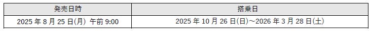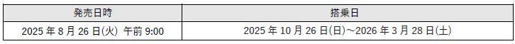 【2025年10月26日(日)~2026年3月28日(土)ご搭乗分】