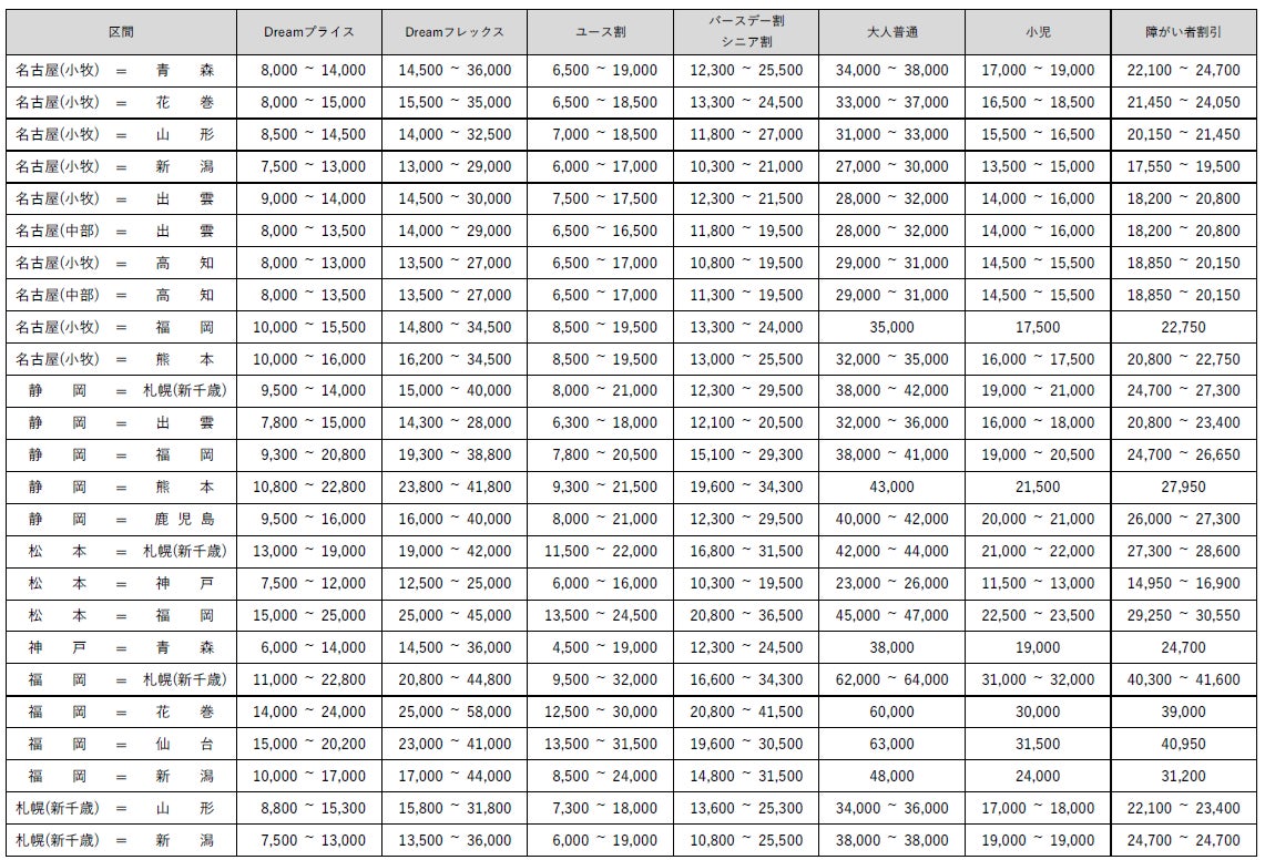 ※各種運賃詳細、取消手数料、適用条件等につきましては、FDA公式ホームページをご確認ください