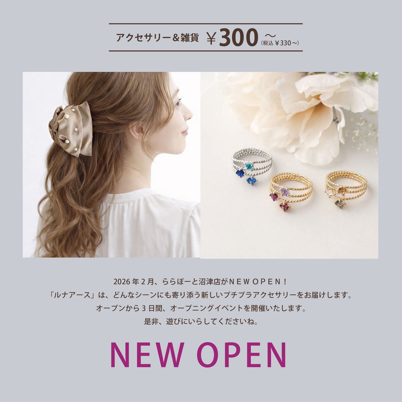 2/28(土)330円(税込)からのプチプラアクセサリーブランド「LUNA EARTH」 ららぽーと沼津店がオープン