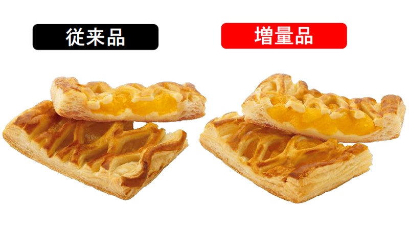 ダイスりんごシロップ漬けが20%増量!青森県産りんごのシロップ漬けダイスとカスタード風クリームを包んで焼き上げたパイです。