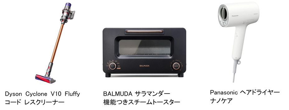 B賞(10名様)・・・約2万円相当の電化製品(下記の中からお好きなものをお選びいただけます)