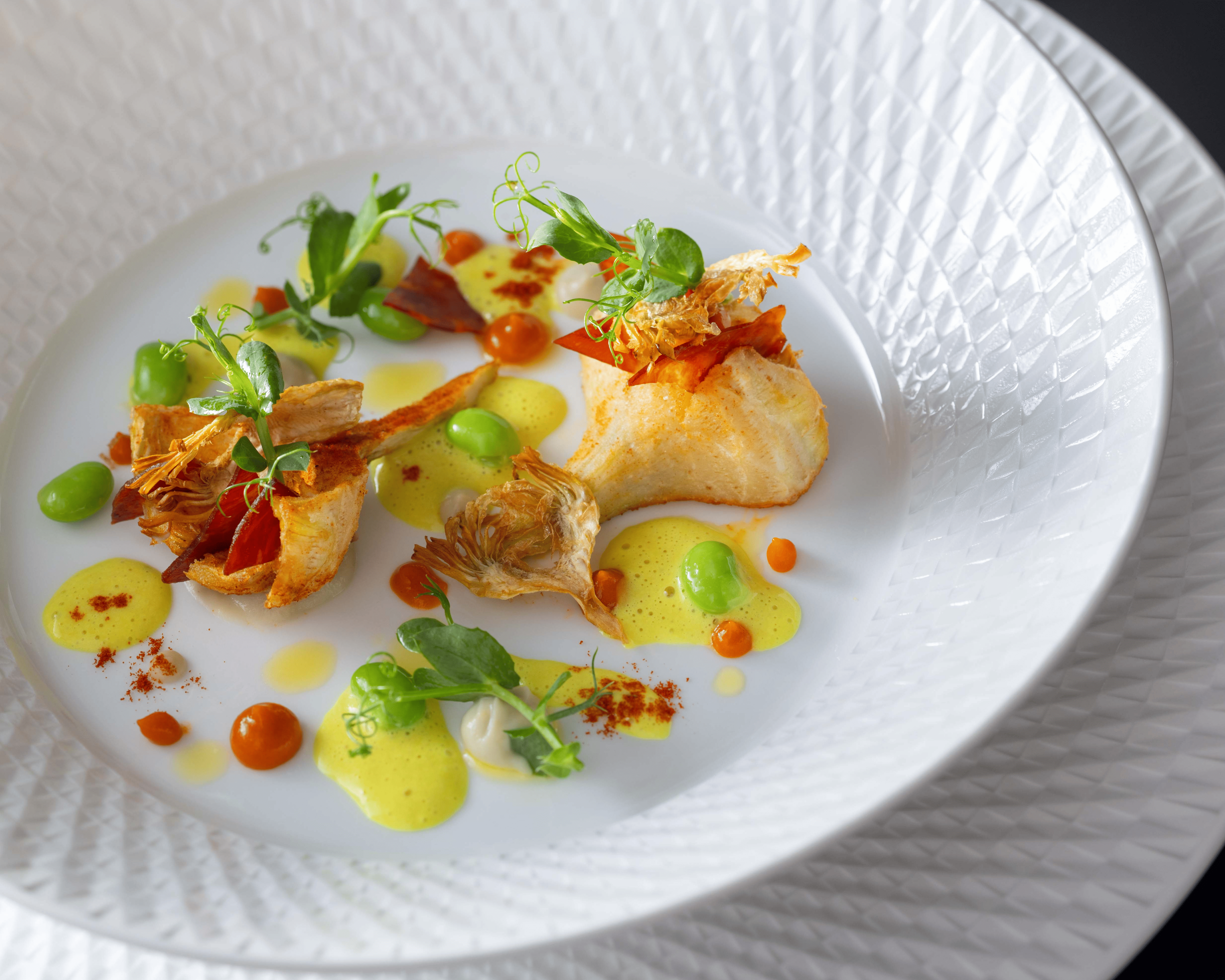 温前菜は、アーティチョークを贅沢に使用した華やかなひと皿。
