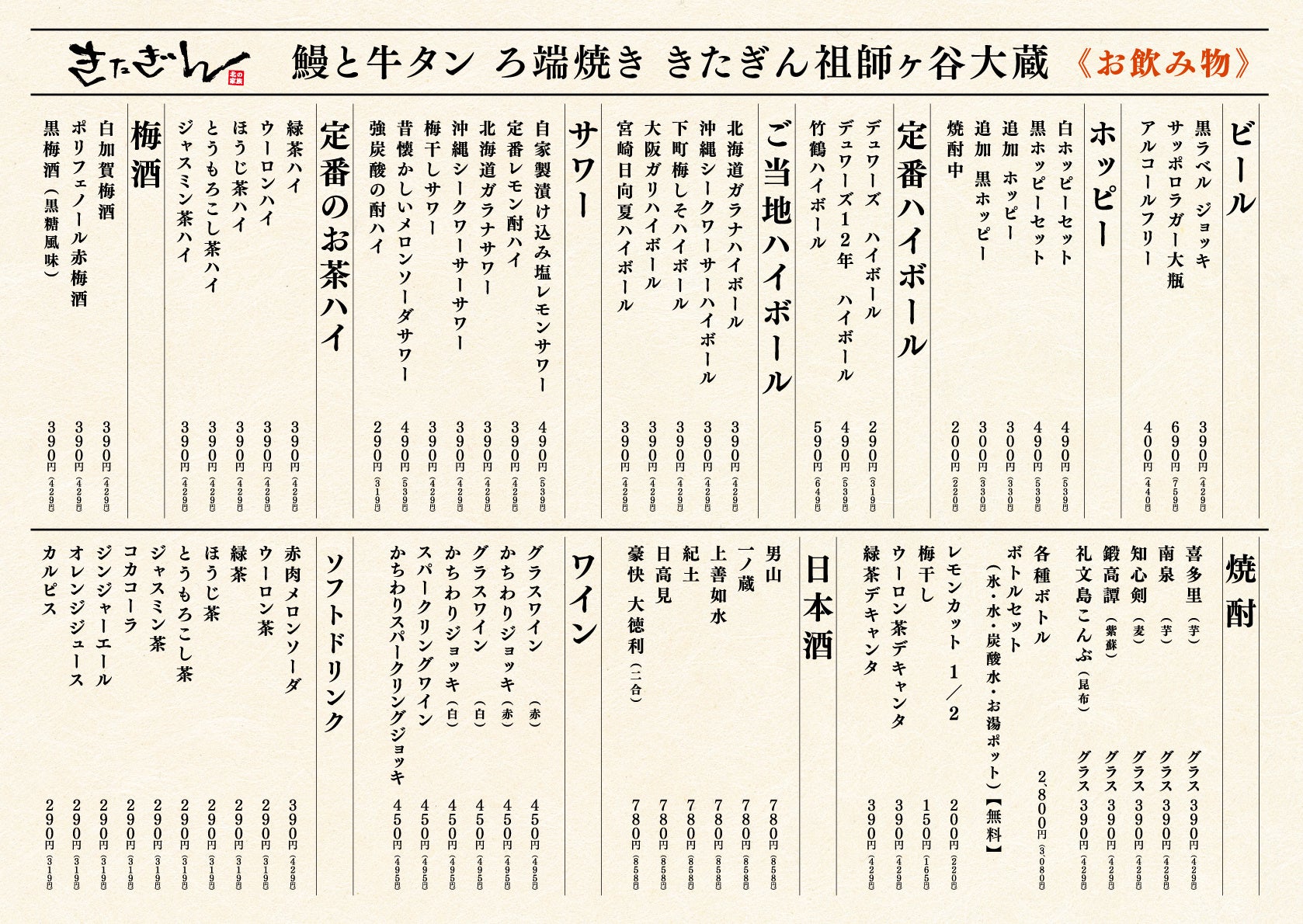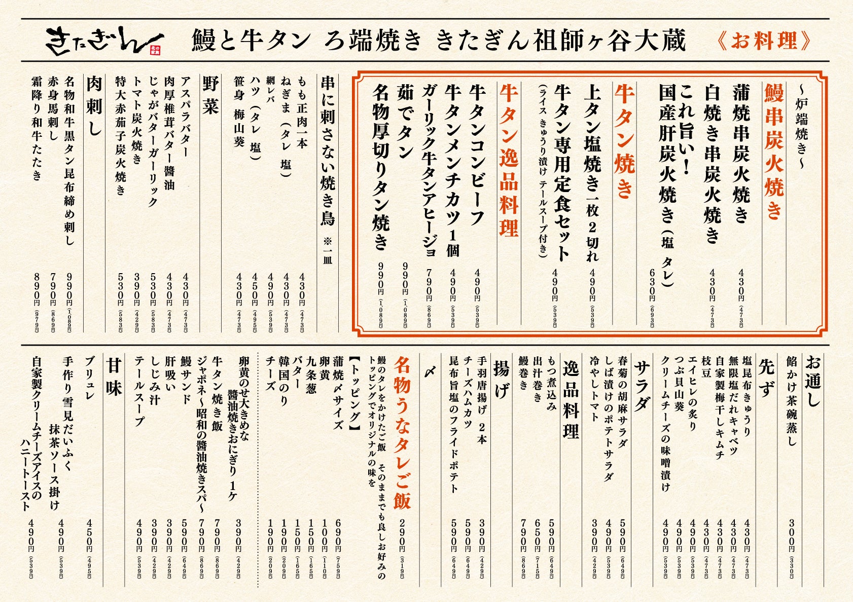 店 名 :鰻と牛タン ろ端焼き きたぎん祖師ヶ谷大蔵