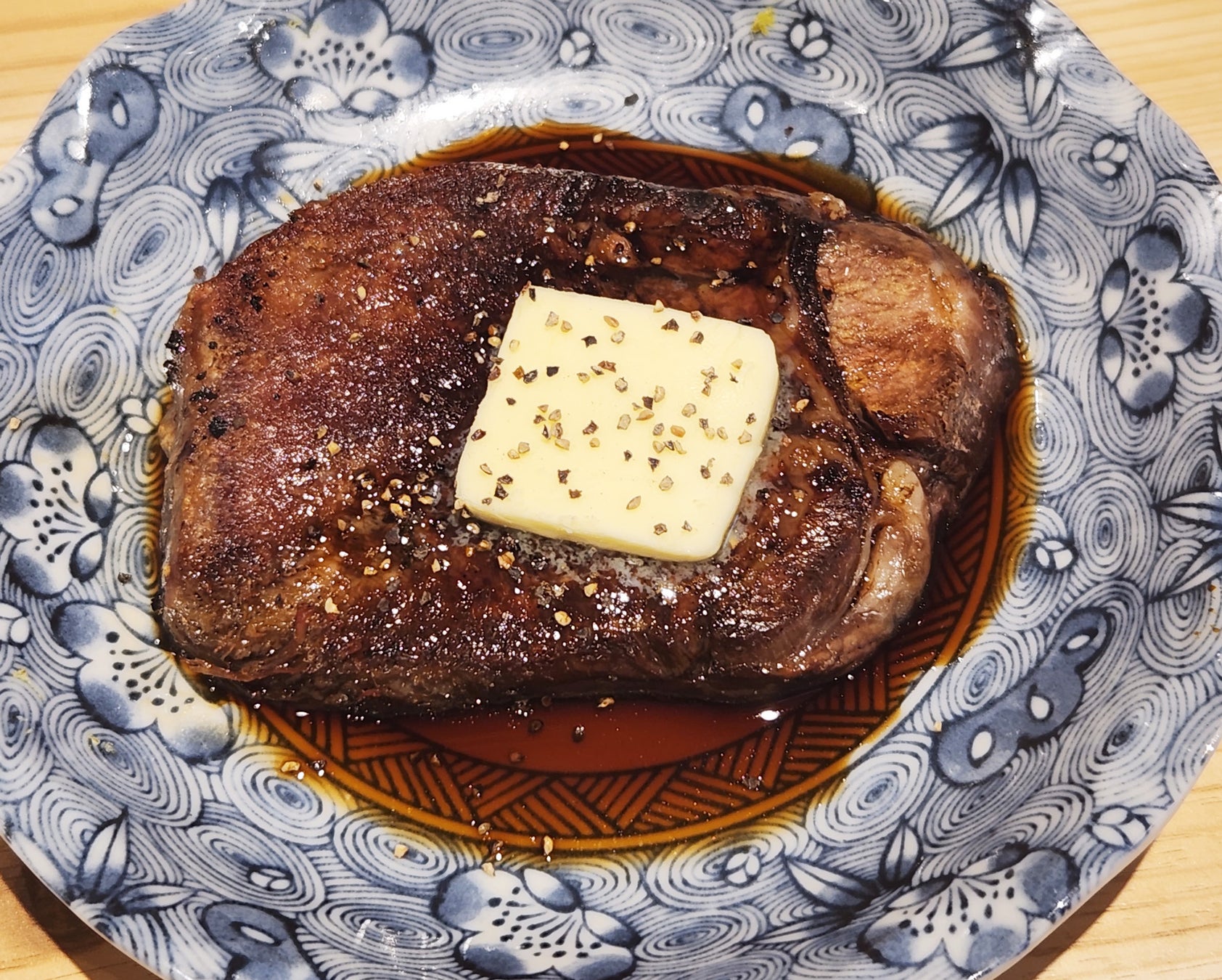 そのままでも美味しい「茹でタン」をさらに"ろ端炭火"で焼き、濃厚な特製ダレとバターで味付け。炭火の風味がふわっと香ります。