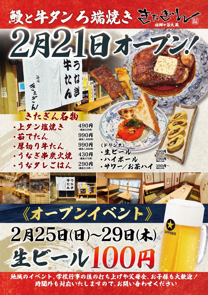 【ろ端炭火でふっくらと香ばしく】「鰻と牛タン ろ端焼き きたぎん祖師ヶ谷大蔵」が2月21日(水)リニューアルオープン!