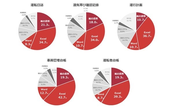 本調査においても、昨年4月に義務化された白ナンバー車両使用事業者のアルコールチェックの実施率が55.8%に留まっており、その他の義務化されている管理業務については半数を大きく下回る結果となりました。併せて、「日々の書類作成・管理を伴う業務が大きな負担になっている」「情報管理がアナログな手法で行われている」ことがわかり、それらの要因が安全運転管理者の負荷増大および管理業務遂行の妨げになっていると推測されます。その一方で、それらの課題解決に向けて、多くの企業が管理業務の効率化につながるDX・ITツール、車両管理システムの導入を検討するなど、各企業の改善意識は高いことがわかりました。