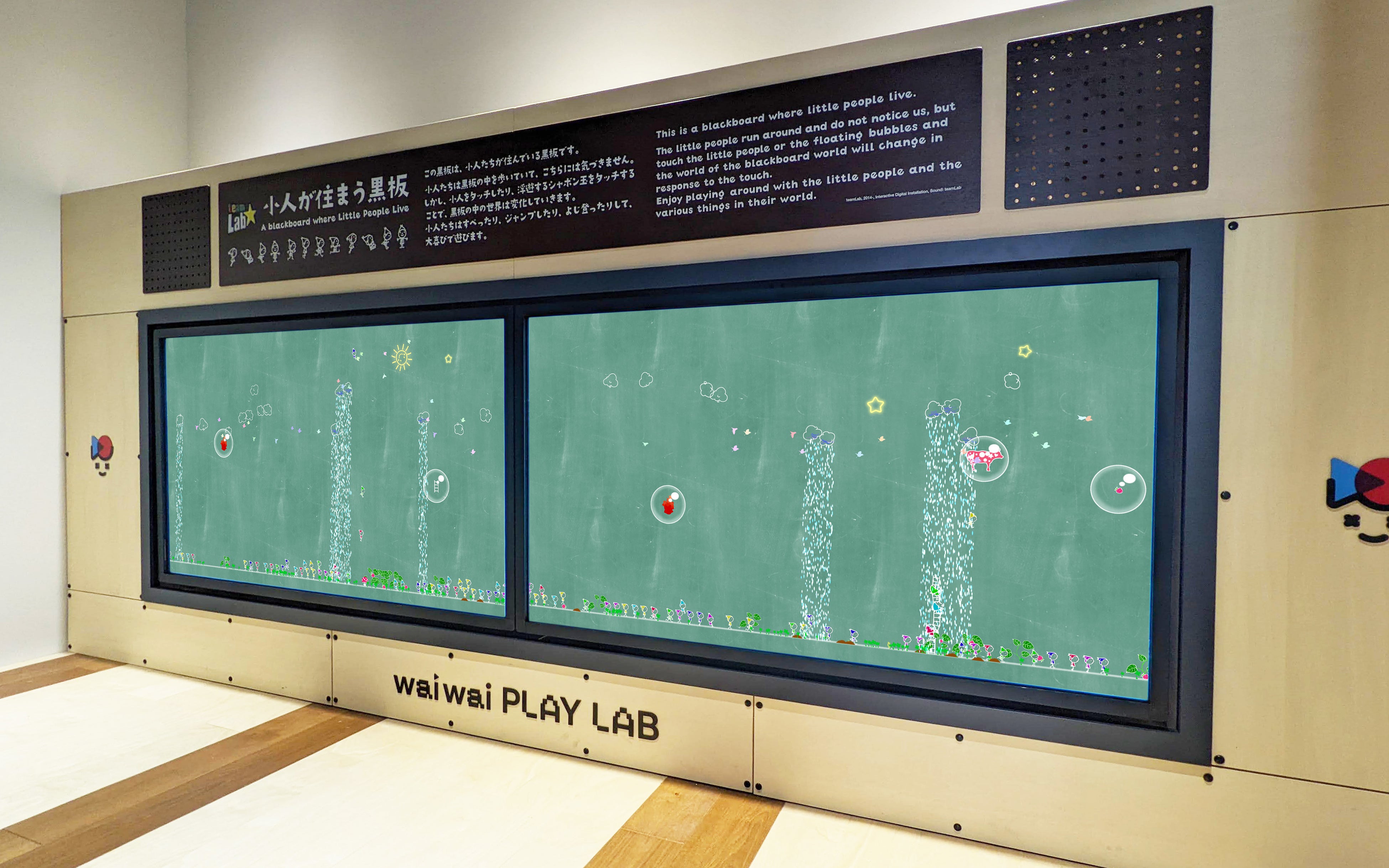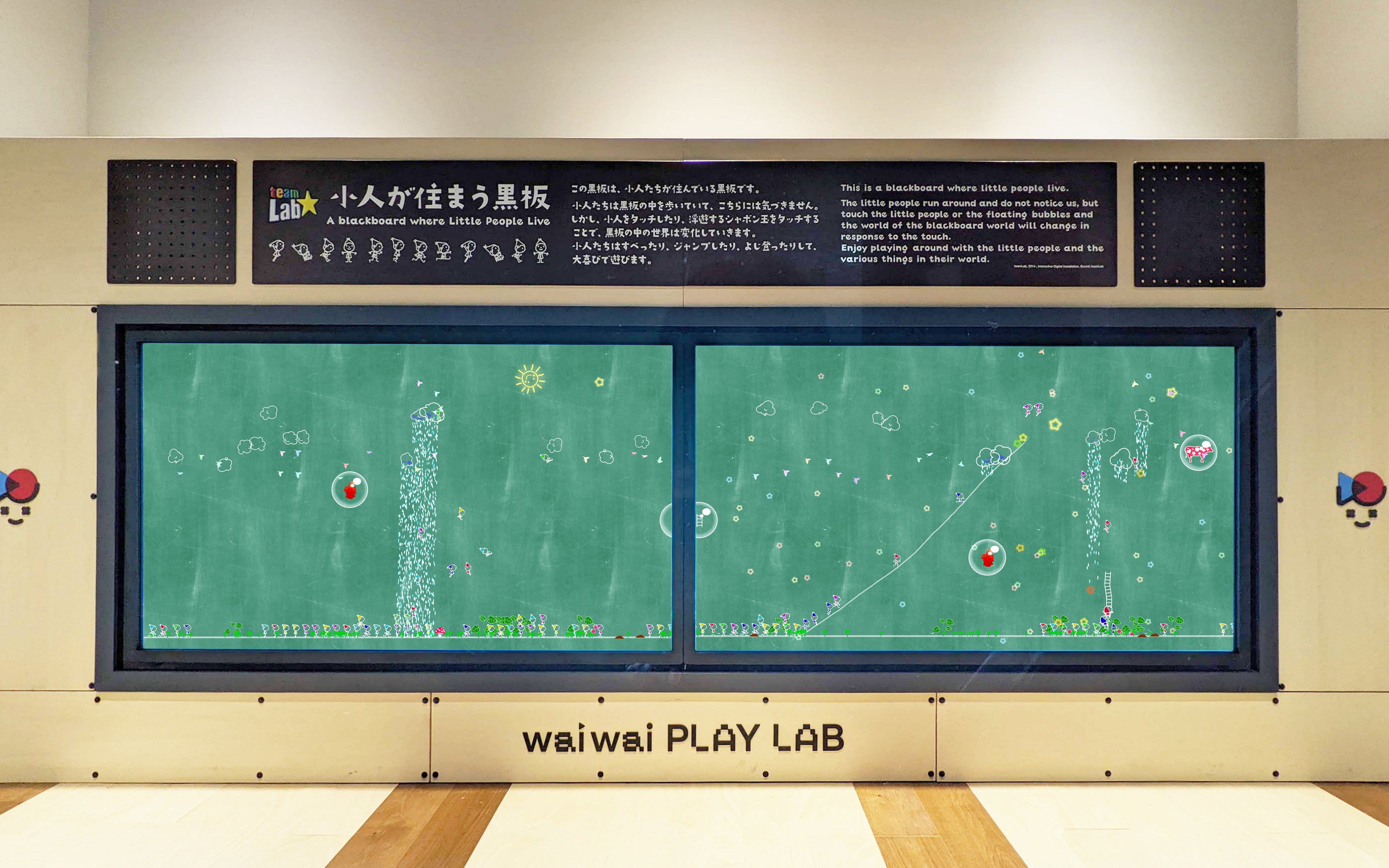 チームラボ、宮崎県の延岡市にオープンするwaiwai PLAY LAB(ワイワイプレイラボ)に、タッチしたり線を引くとインタラクティブに世界が変化する「小人が住まう黒板」を常設展示。3/19(火)から