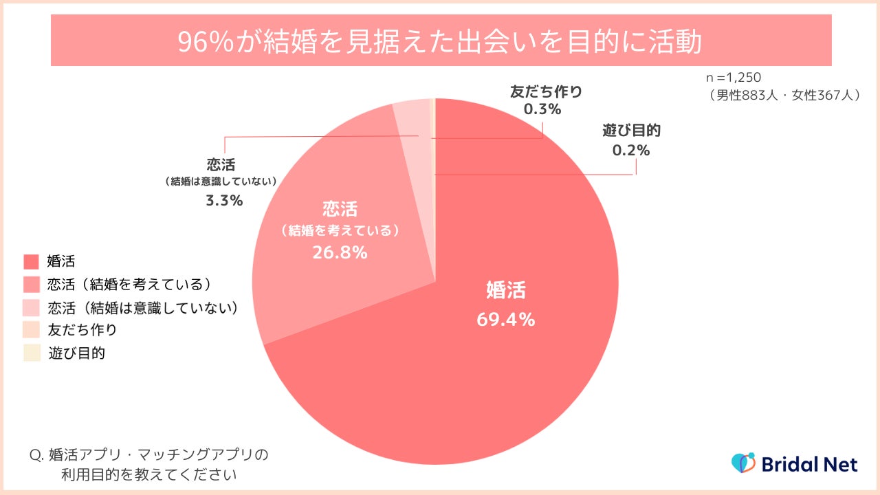 【婚活男女1,250名に調査】ブライダルネット利用会員の96%が「結婚を見据えて活動」と回答