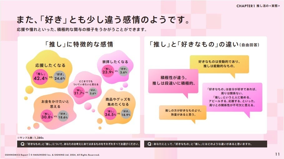 ◯「推し」と「好きなもの」の違いは積極性。「応援」「崇拝」「お金をかけたいと思える」存在が「推し」