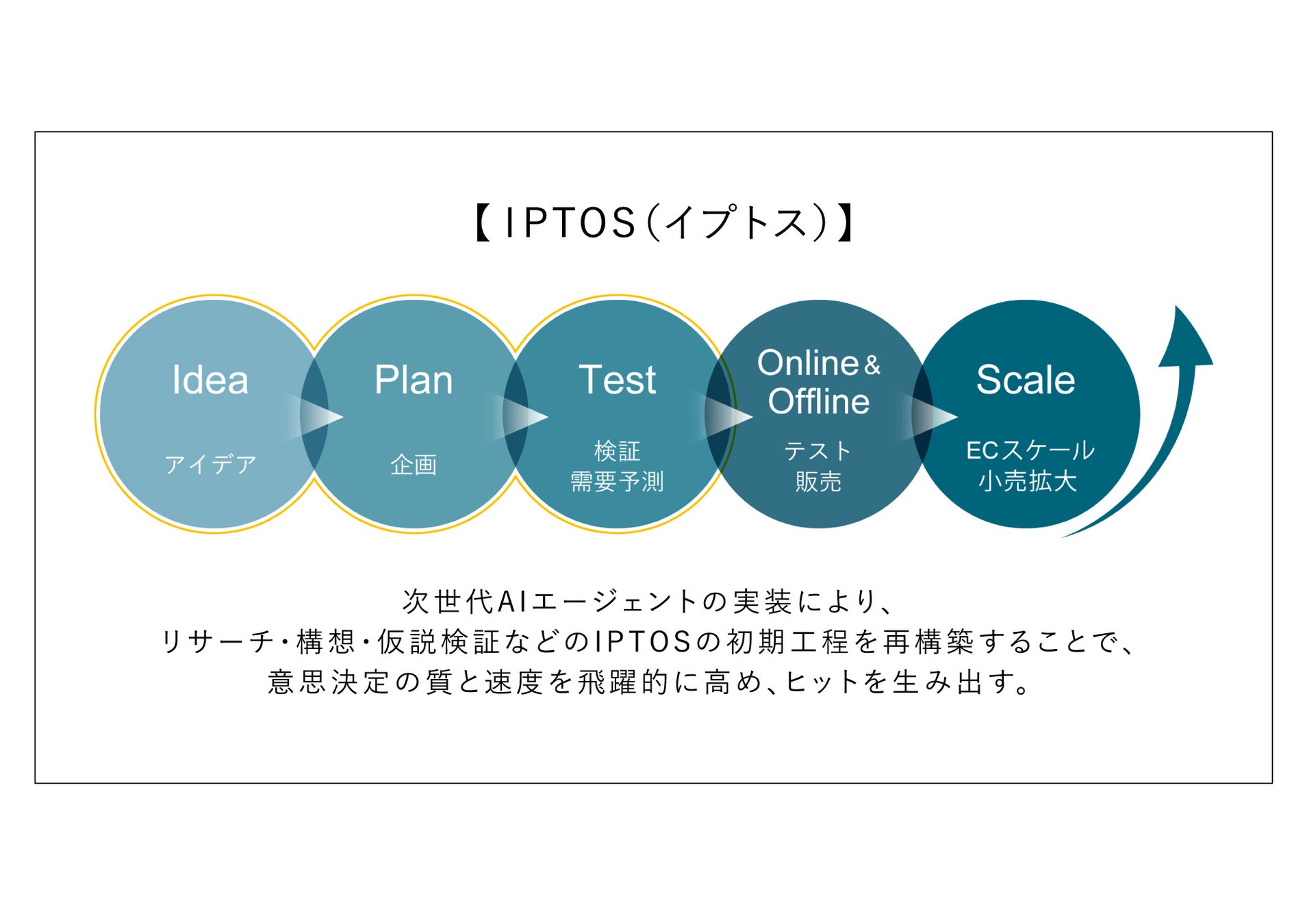 I-neが独自に運用するブランドマネジメントシステム「IPTOS(イプトス)」に、次世代AIエージェントを統合。生成AIや量子アニーリングを含む先端計算技術を駆使し、リサーチ・構想・仮説検証などの初期工程を再構築することで、意思決定の質と速度を飛躍的に高めます。