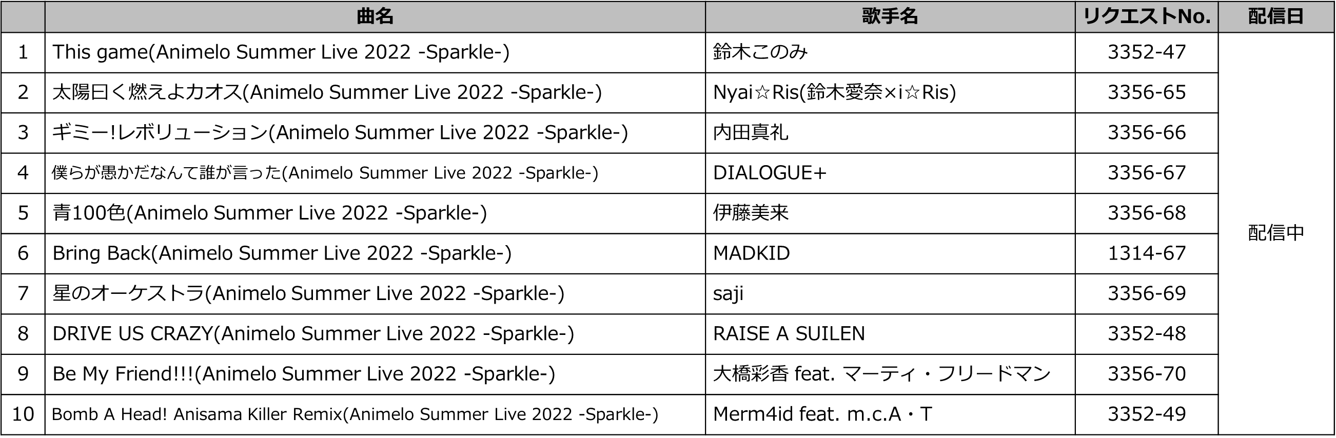 ③通信カラオケDAM に「Animelo Summer Live 2022 -Sparkle-」のLIVEカラオケ10曲を独占配信 。*