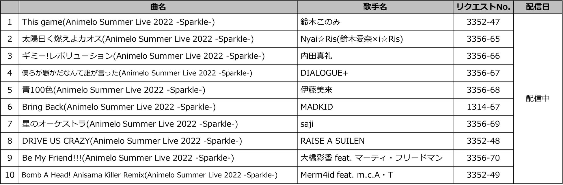 - Animelo Summer Live 2022 -Sparkle- LIVEカラオケ配信曲