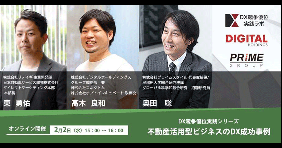 DX競争優位実践ラボ・株式会社プライムスタイル共催 無料オンラインセミナー「【DX競争優位実践シリーズ】不動産活用型ビジネスのDX成功事例」へIX(産業変革)に挑戦する社員2名が登壇