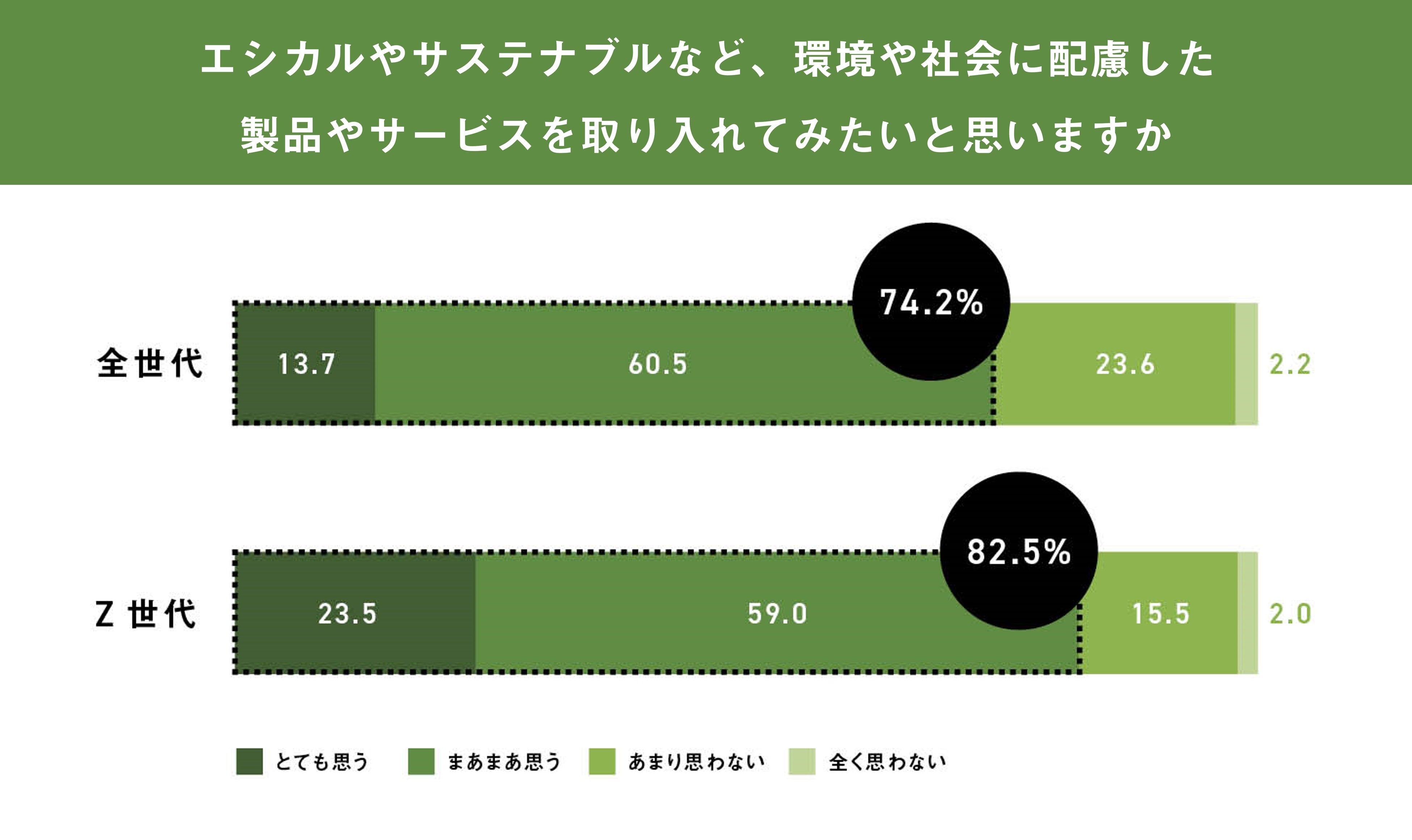 【購買行動とくらしにおけるサステナビリティ意識調査】「自分の意思表示」として捉えるZ世代がサステナブルな未来をリード?! 82.5%がサステナブルな製品導入意向。最多理由は「未来の環境を良くしたい」。