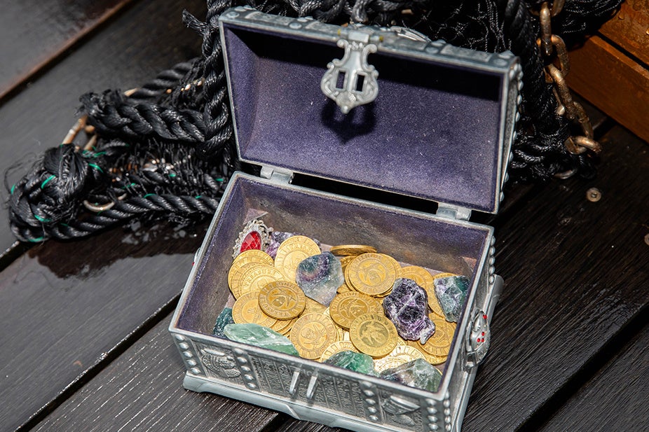 トレジャーマップを手に、ホテル敷地内数カ所に隠された暗号を解いてミッションをクリアし、海賊船に乗船します