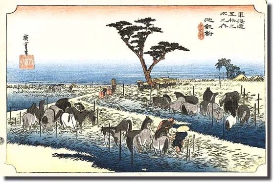 江戸時代、馬は大名の参勤交代や公用の輸送を支える「伝馬(てんま)」として大きな役割を果たしました。また、商品などの荷物や人の輸送には、馬借(ばしゃく)や馬子(まご)といった人たちが「駄馬(だば)」とともに搬送の役割を果たし、庶民の生活にも深くかかわりました。