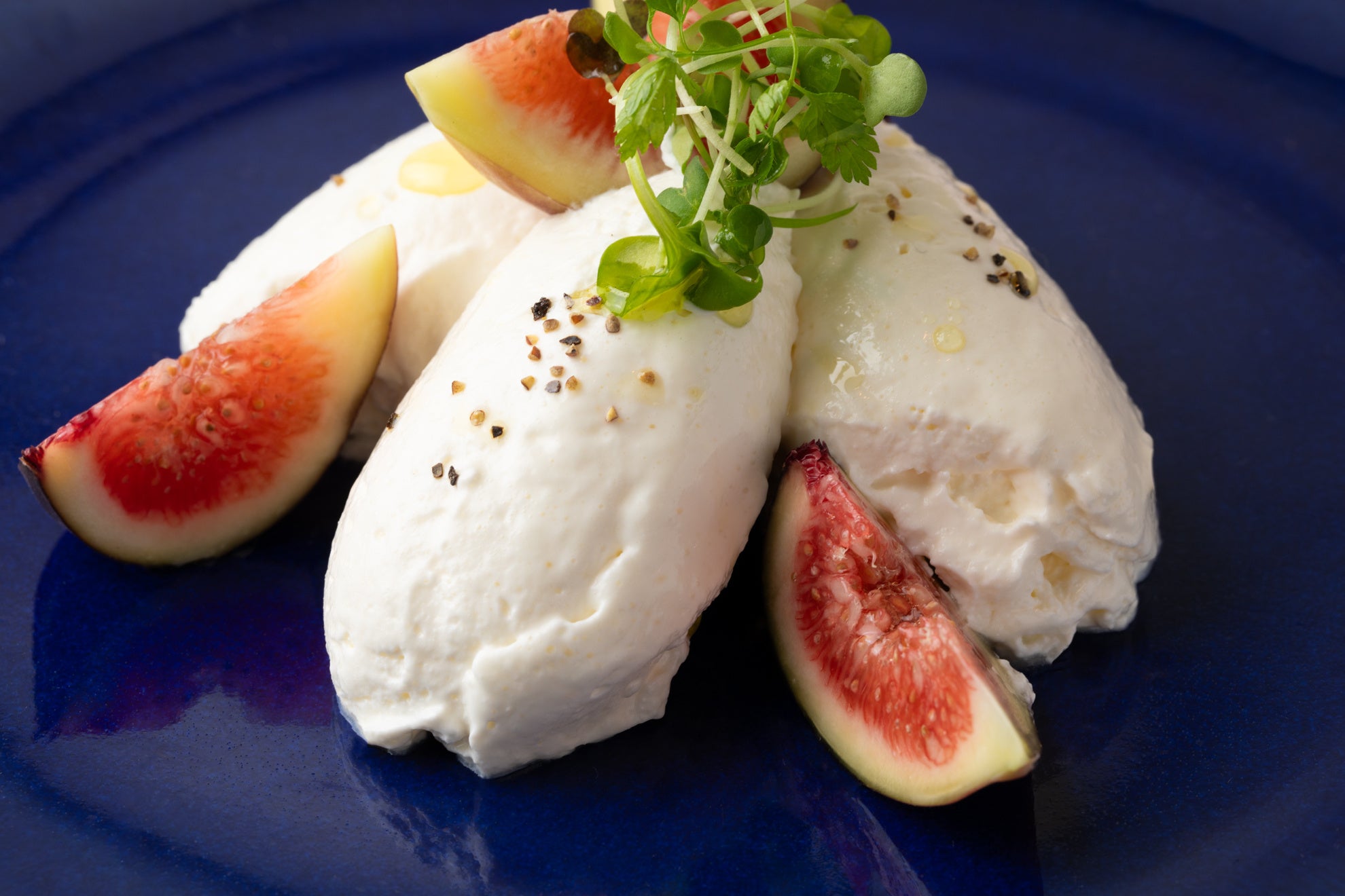 とろけるような食感のカプレーゼ、季節の果実と一緒にお楽しみください。