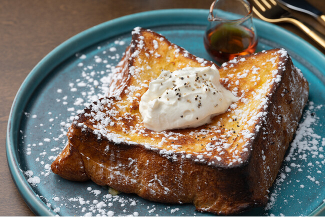 発酵バター香るフレンチトーストを燻製ホイップクリームとメープルシロップでお楽しみください。
