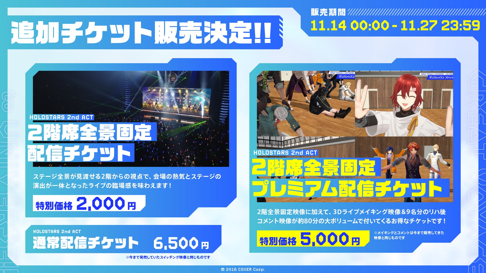 - 《HOLOSTARS 2nd ACT 「GREAT VOYAGE to UNIVERSE!!」》配信チケット概要