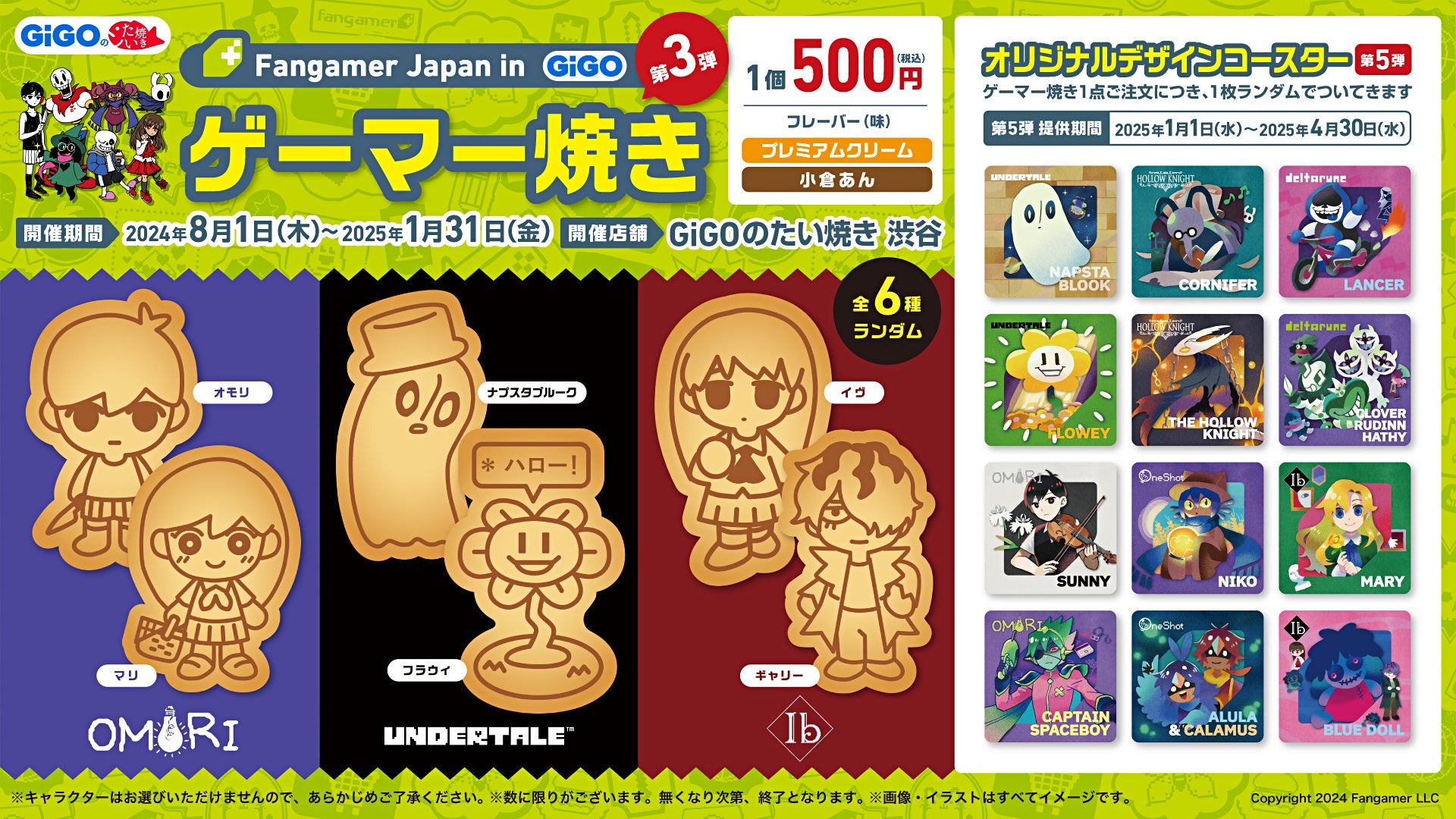 株式会社GENDA GiGO Entertainment(本社:東京都港区 代表取締役社長:二宮 一浩 以下当社)が、「Fangamer Japan in GiGO」での飲食コラボ(ゲーマー焼き)で提供しているオリジナルコースターを2025年1月1日(水祝)から新デザインの第5弾に切り替えます。