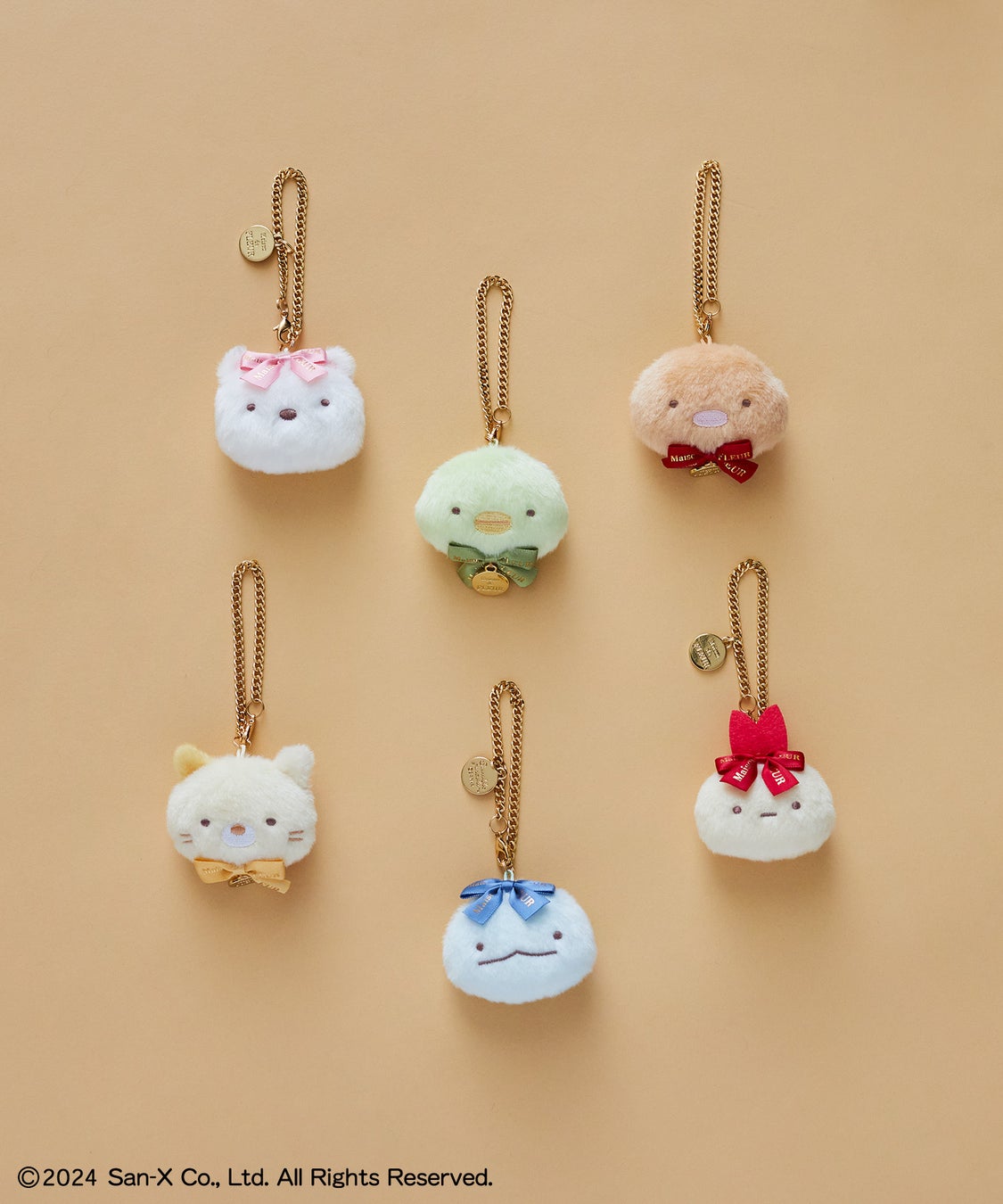 すみっコたちを刺繍で施したバッグは、2型ご用意いたしました。ブランド定番の「フリルハンドルトートバッグ」は、すみっこたちが集合したデザインに。帆布素材の「トートバッグ」には、ブランドロゴにすみっコたちが寄り添う可愛らしい姿を表現しました。すみっコたちとリボンをそれぞれあわせた「チャーム」と、すみっコたちの顔をぬいぐるみ仕様にした「バッグチャーム」を、トートバッグとあわせてコーディネートするのもおすすめです。