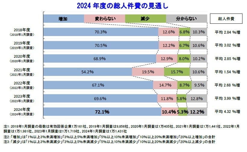 総人件費は平均4.32%増加見込み、従業員給与は平均4.16%増と試算