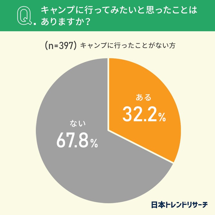 キャンプに行ったことのない32.2%の方が、キャンプに行ってみたいと思ったことが「ある」と答えました。