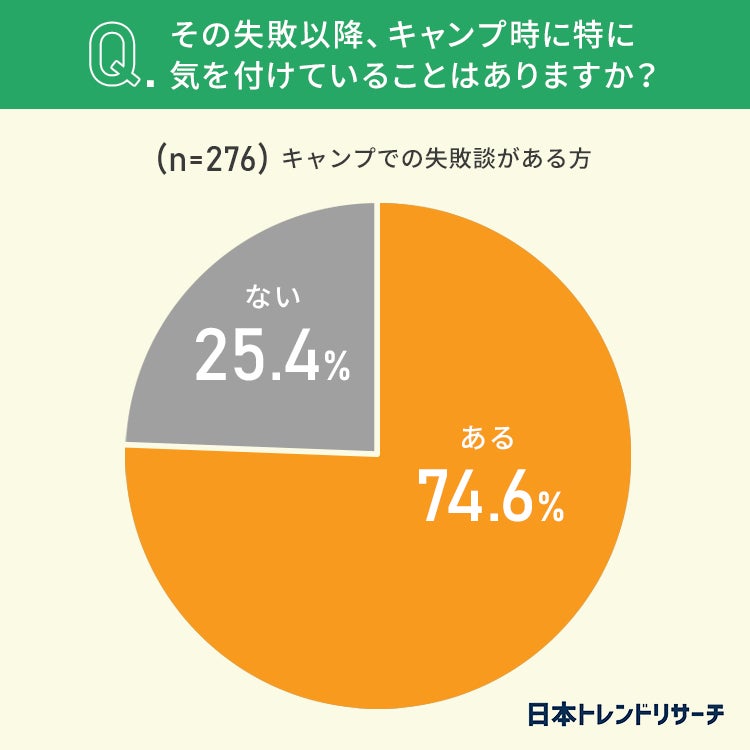 74.6%の方が、その失敗以降、キャンプ時に特に気を付けていることが「ある」と回答しました。