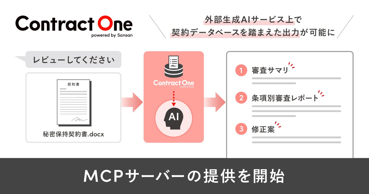 働き方を変えるAXサービスを提供するSansan株式会社は、取引管理サービス「Contract One(コントラクトワン)」において「MCPサーバー」の提供を開始します。
